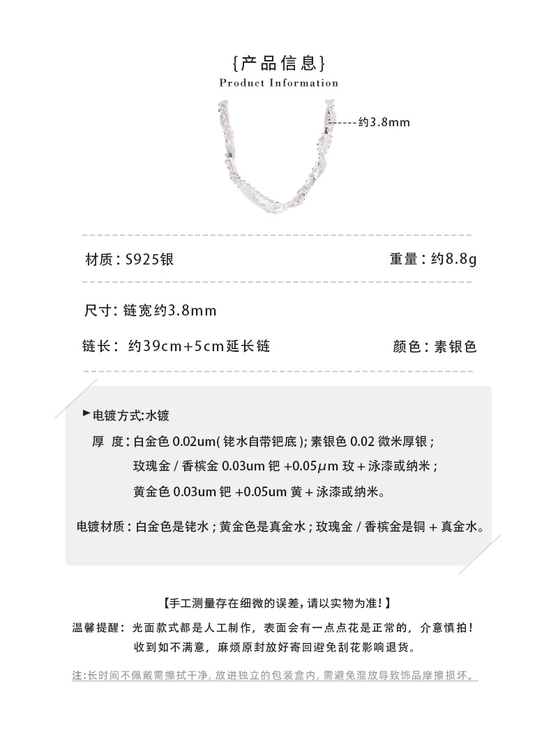 C2廠 韓國韓版重磅三編時尚閃光S925純銀項鍊 批發 折扣@洽客服 25.11.W3「SN3511」