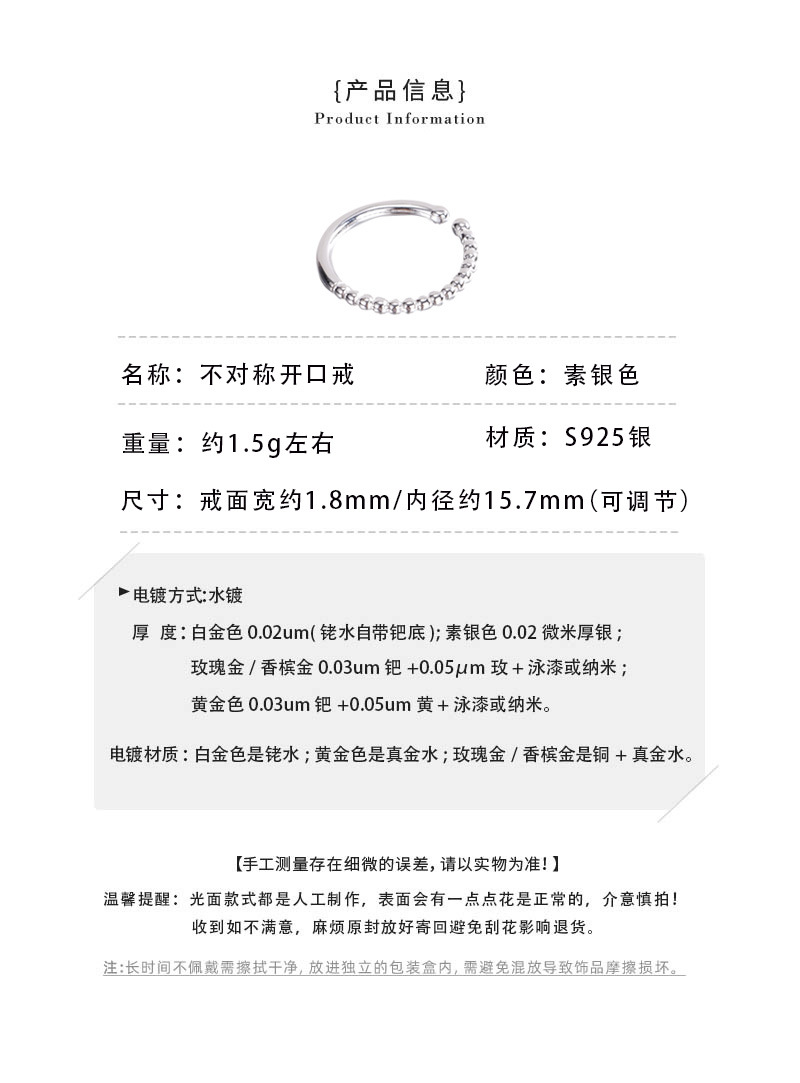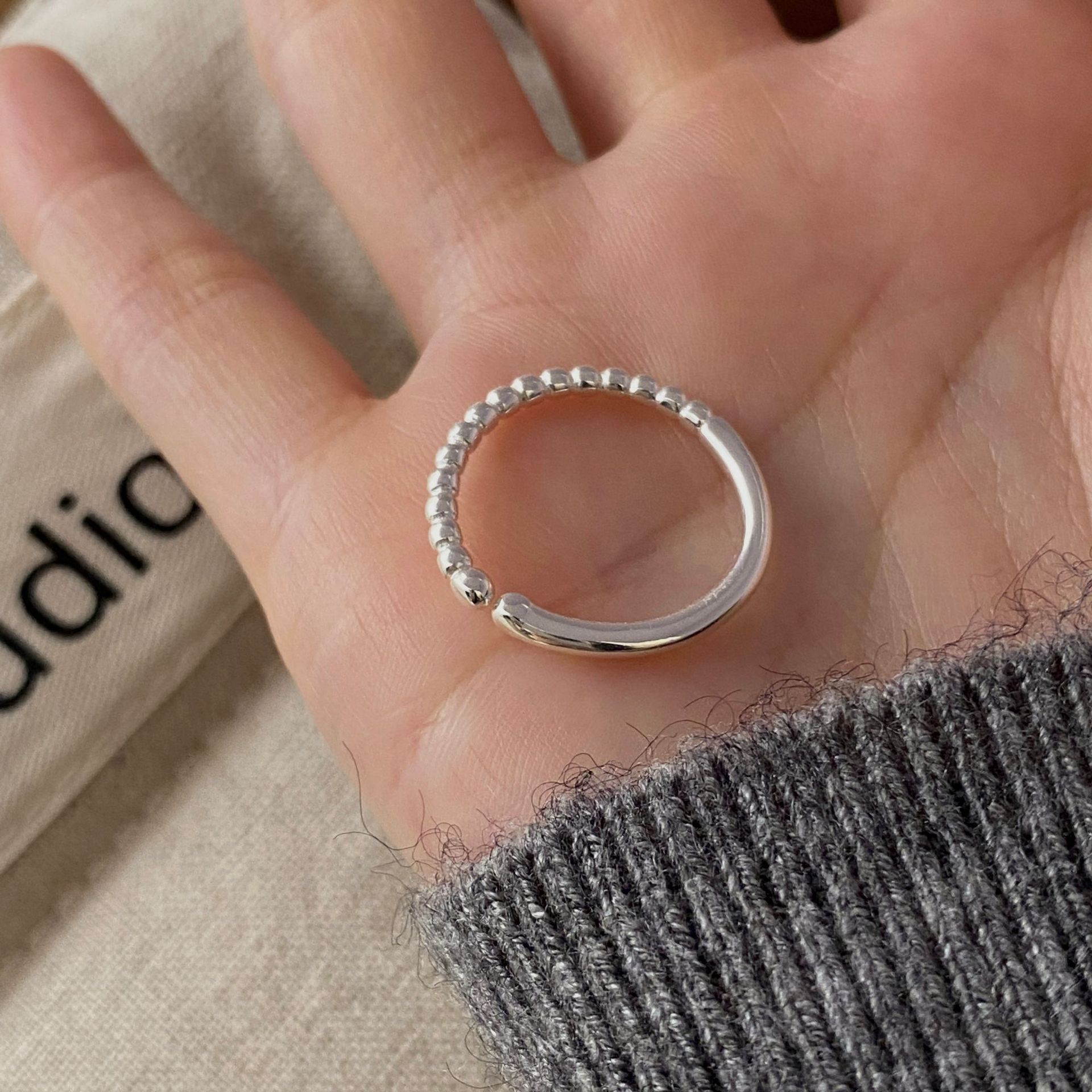 C2廠 韓國韓版圓珠不對稱S925純銀戒指 批發 折扣@洽客服 25.10.W5「SR1418」