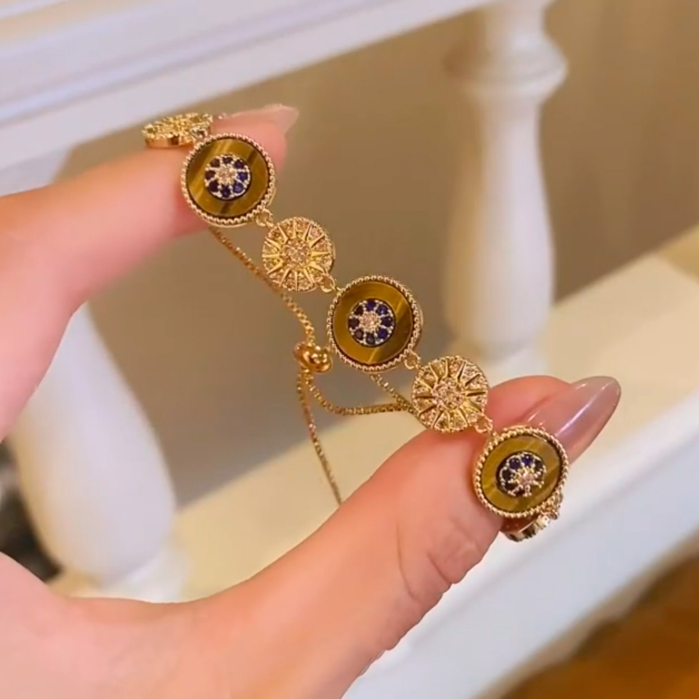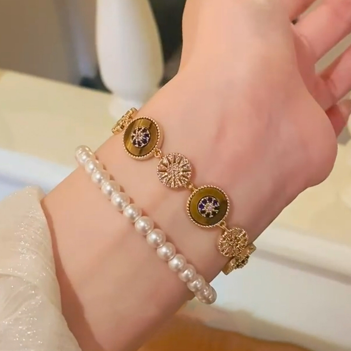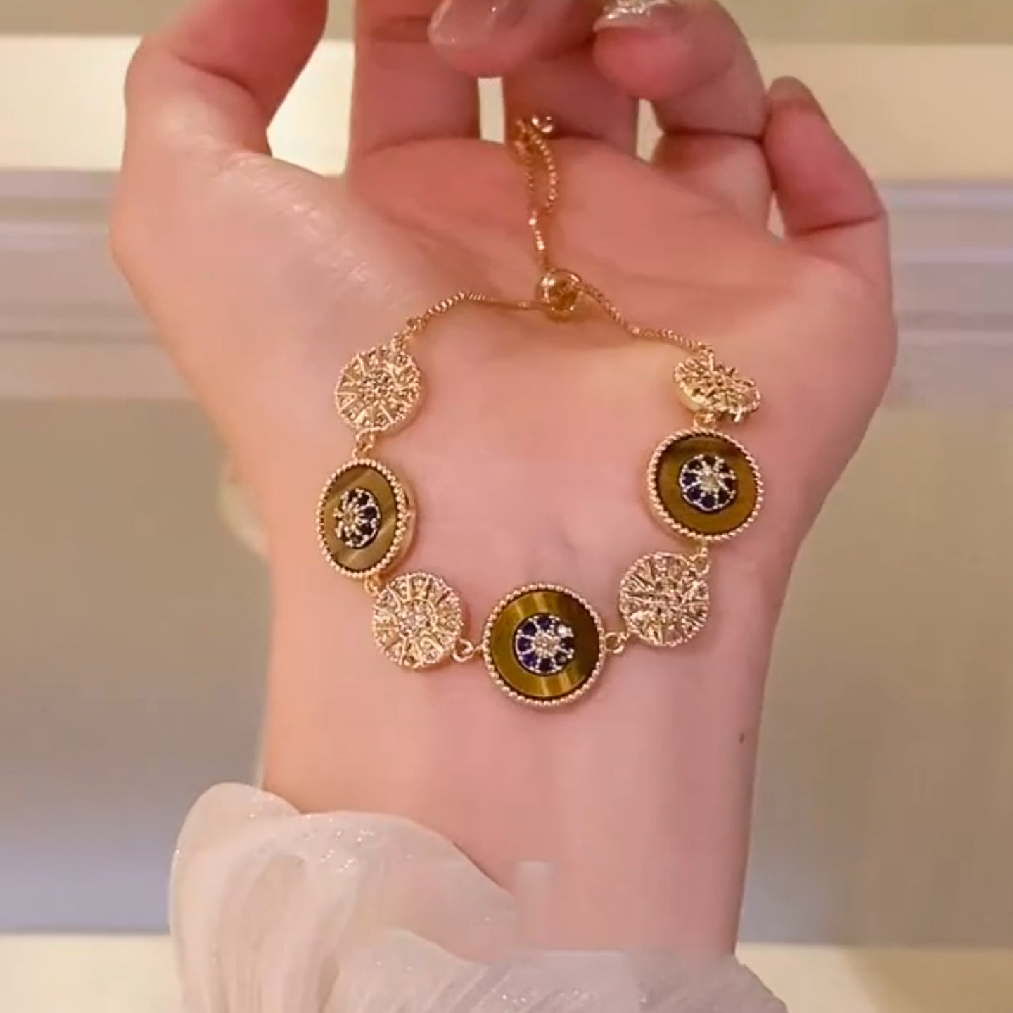 A2廠 韓國韓版幸運輪虎眼石電鍍18k真金手鍊 批發 折扣@洽客服 25.11.W3「WB1714」