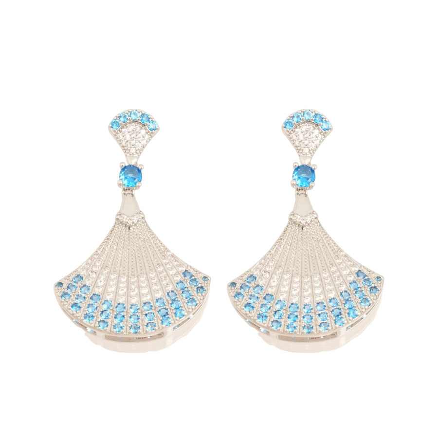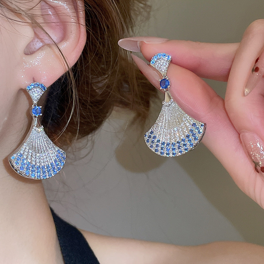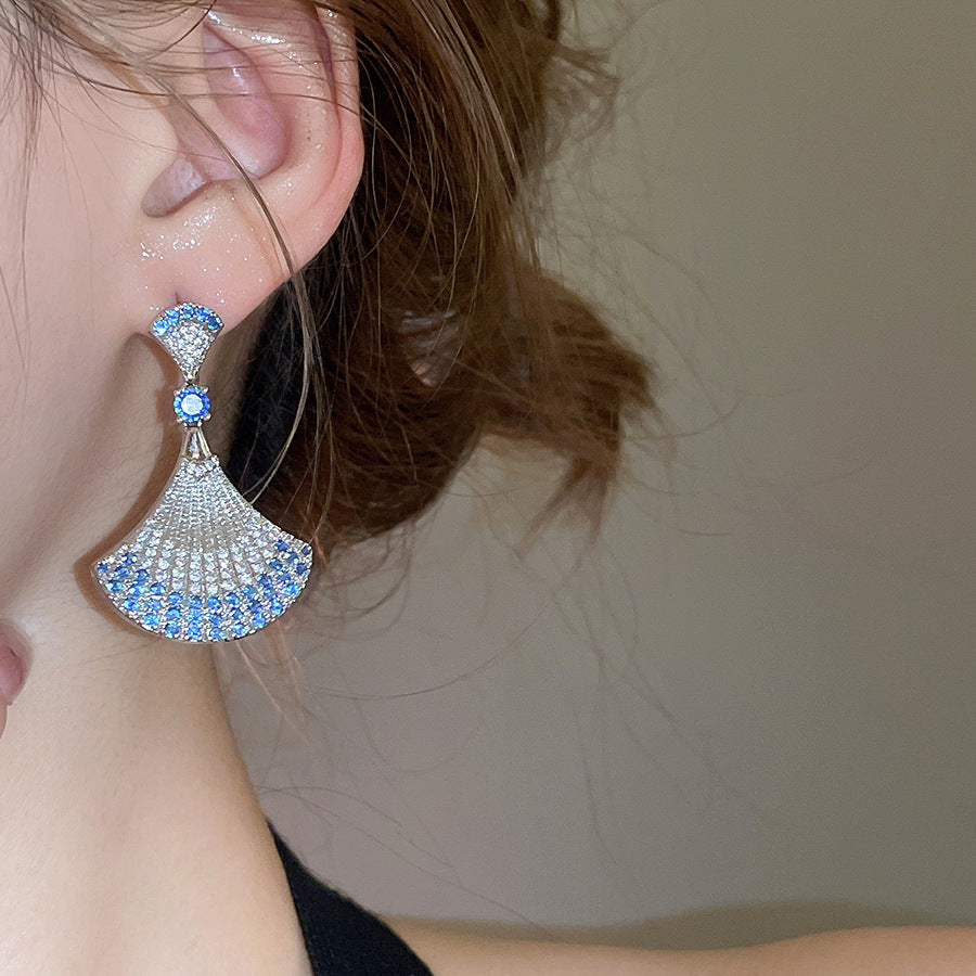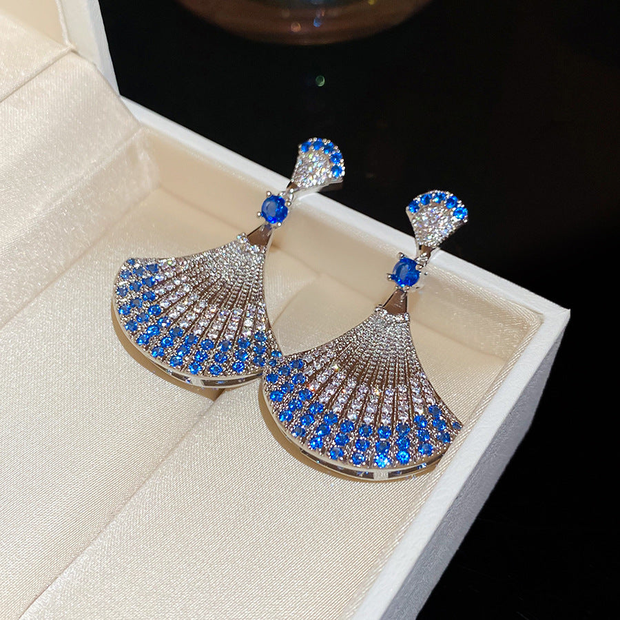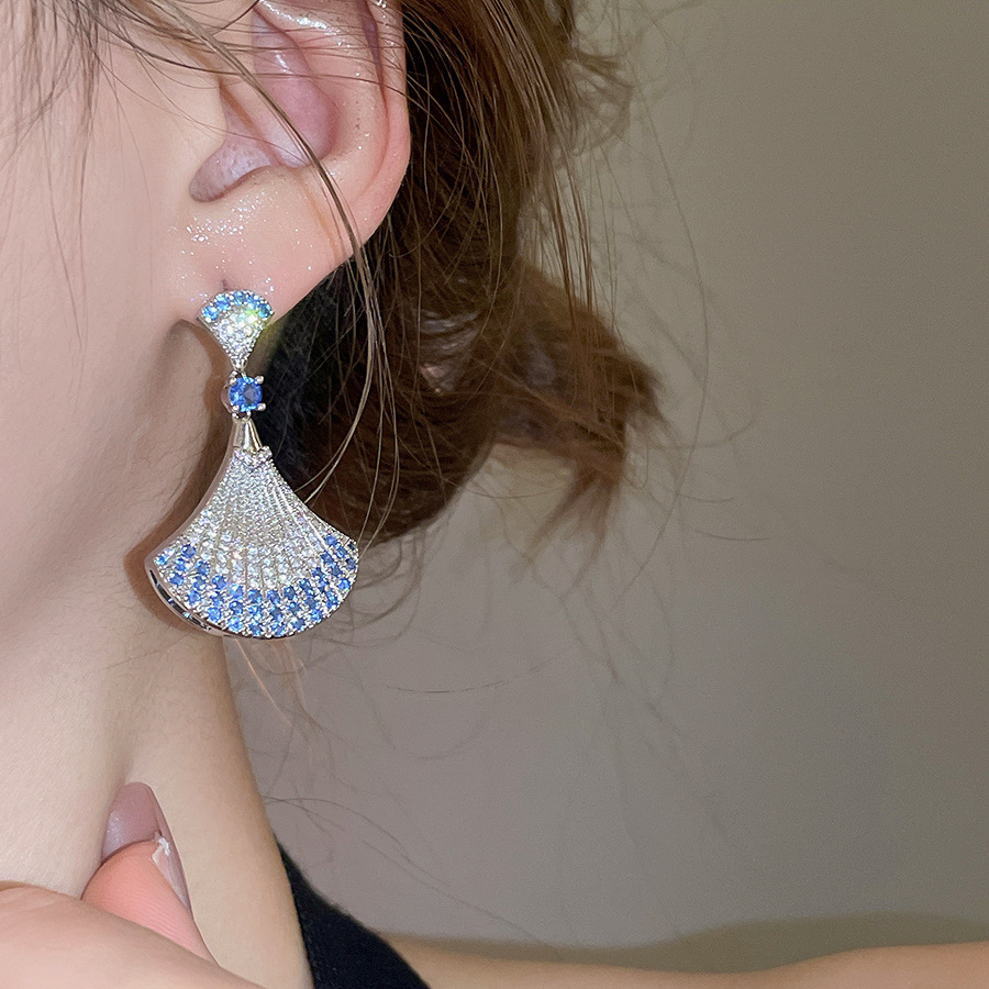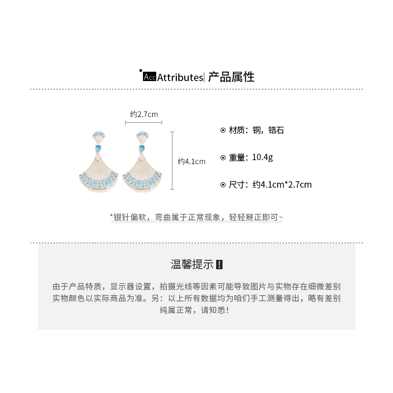A2廠 韓國韓版超閃鋯石扇形銀針耳環 批發 折扣@洽客服 25.10.W2「WE4148」