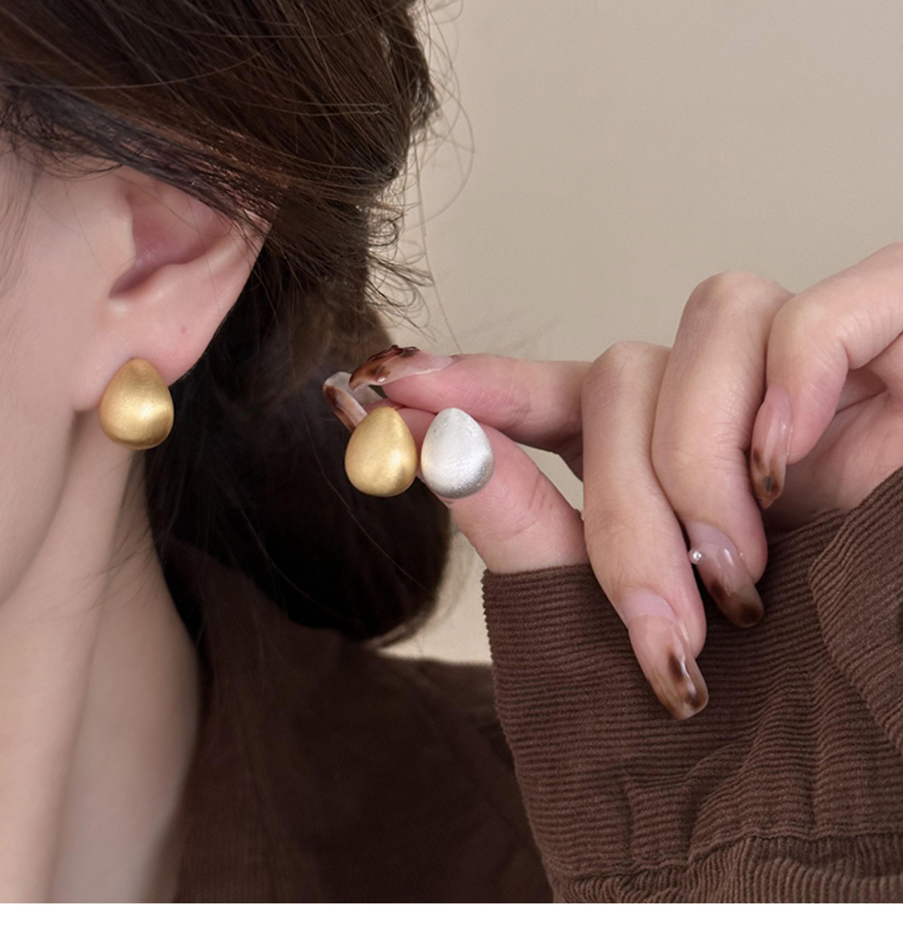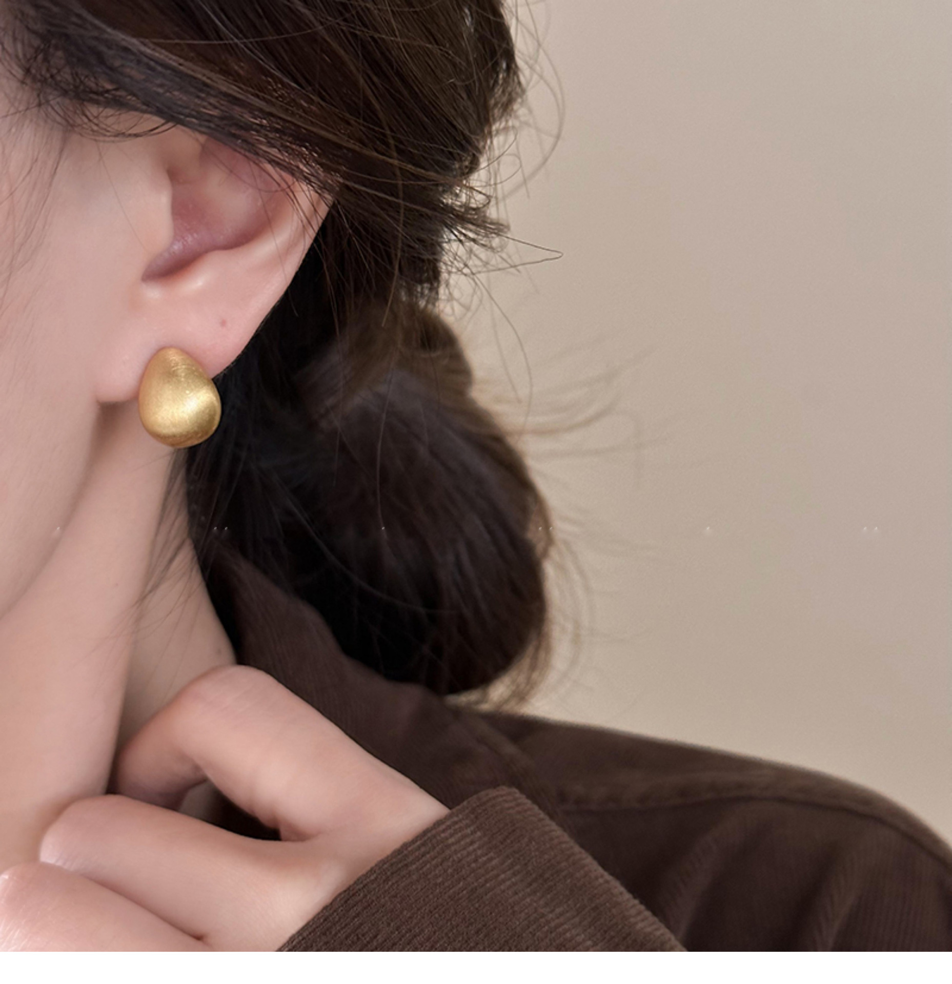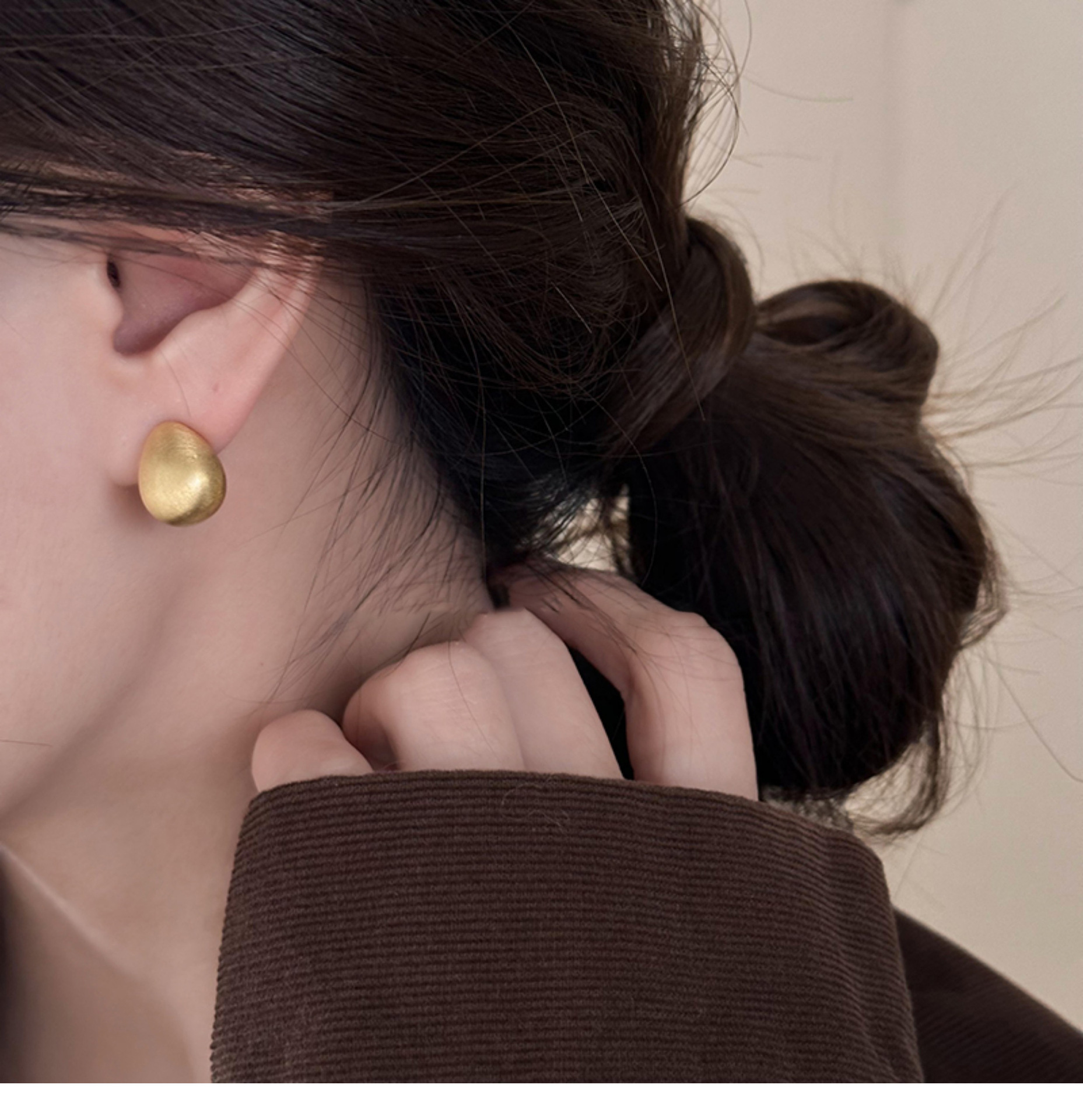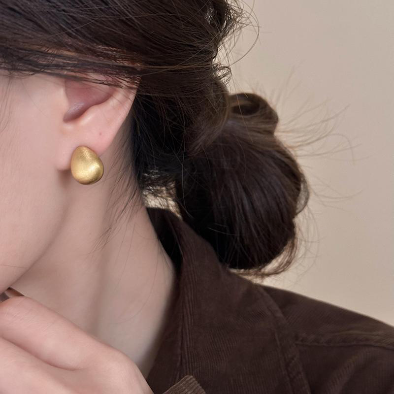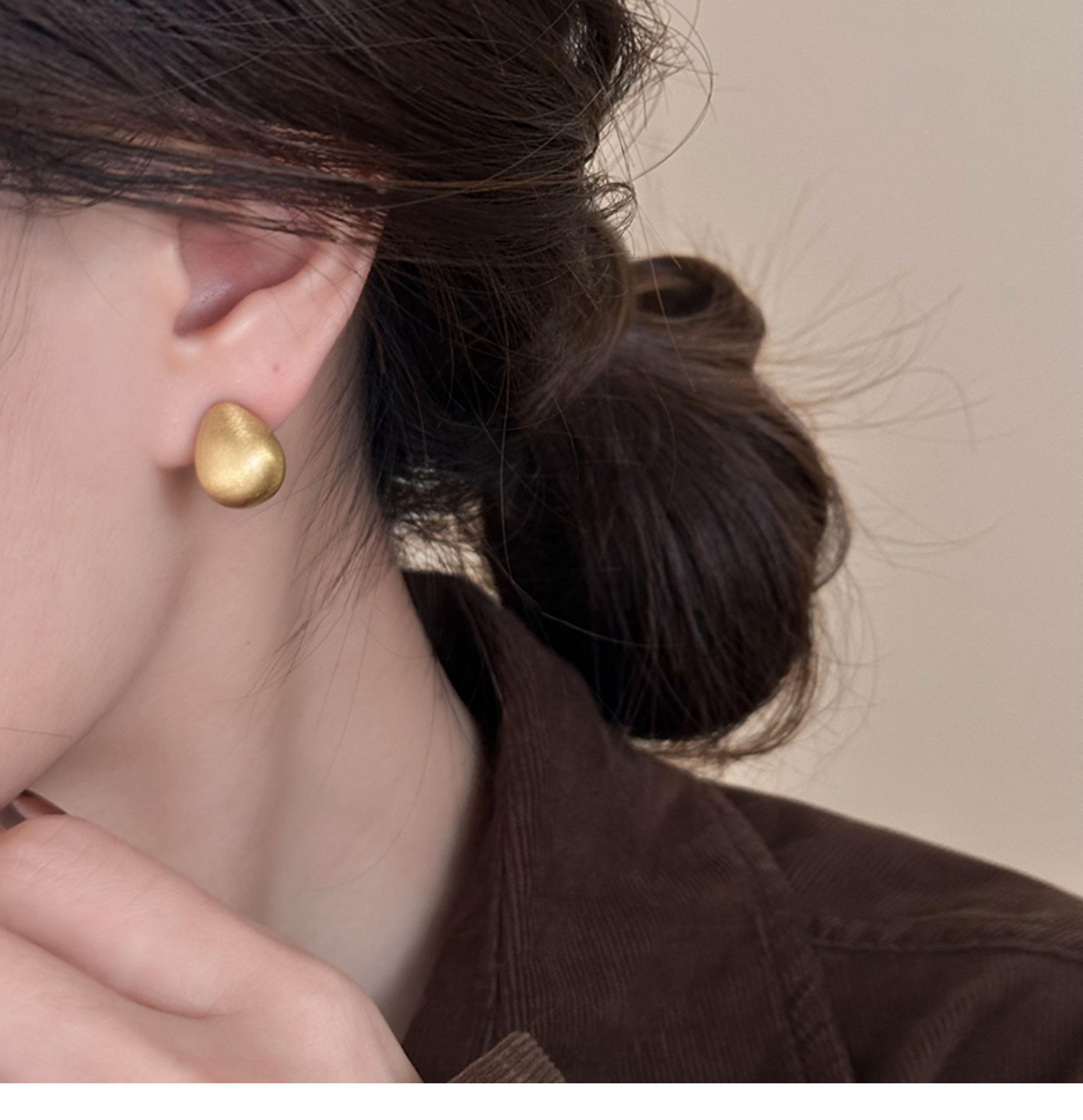 A2廠 韓國韓版金屬拉絲水滴形電鍍18k真金銀針耳環 批發 折扣@洽客服 25.10.W3 「WE4691」
