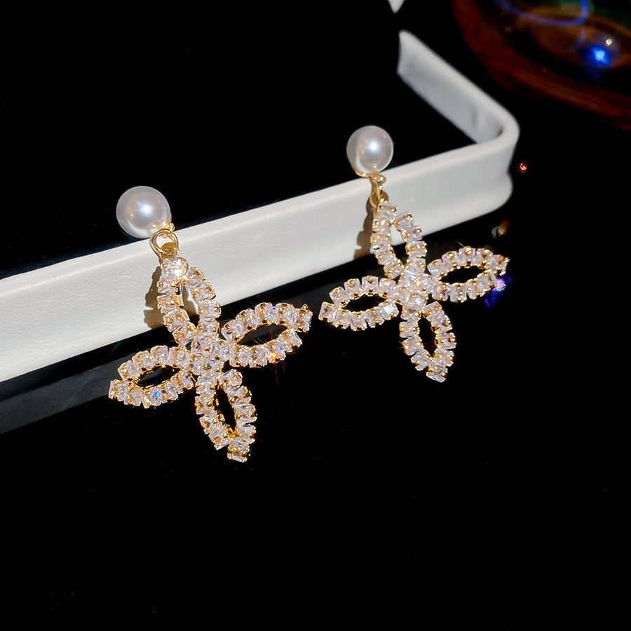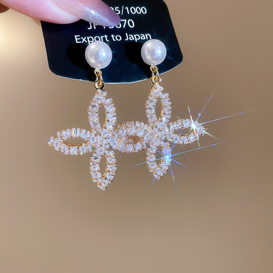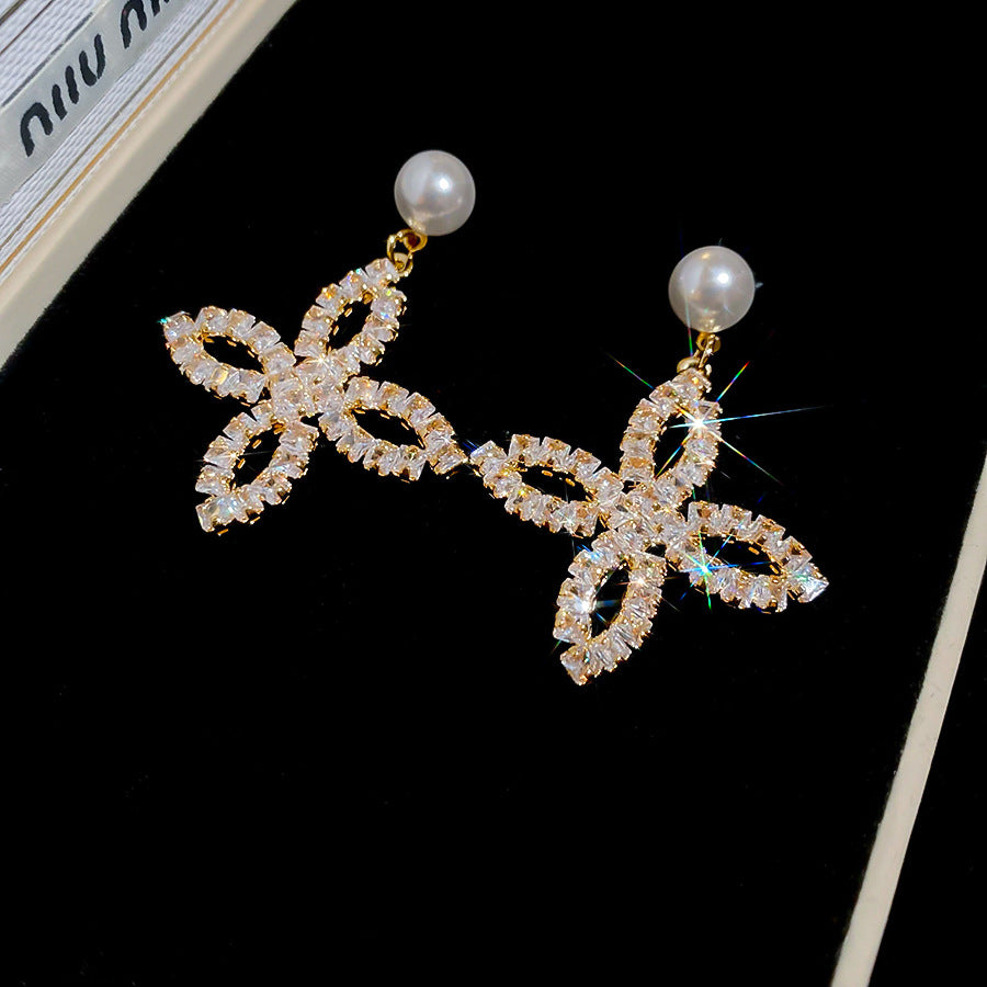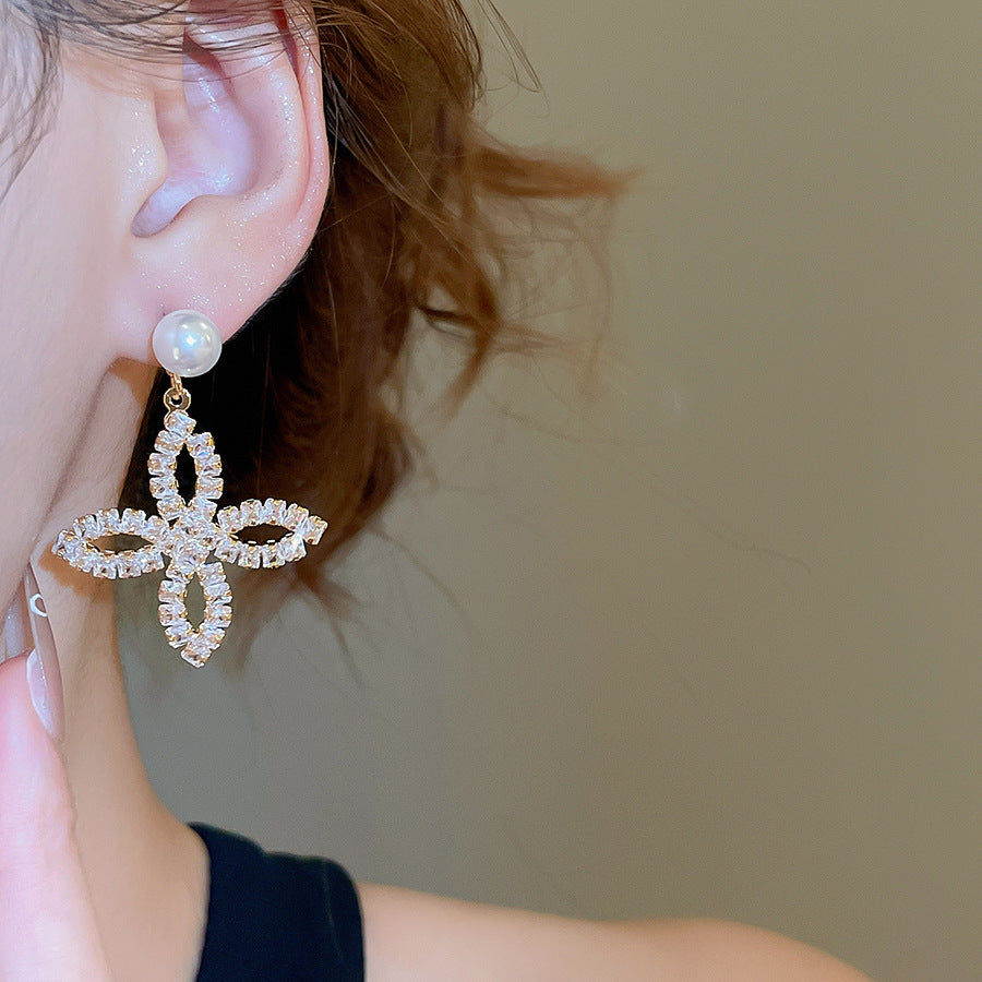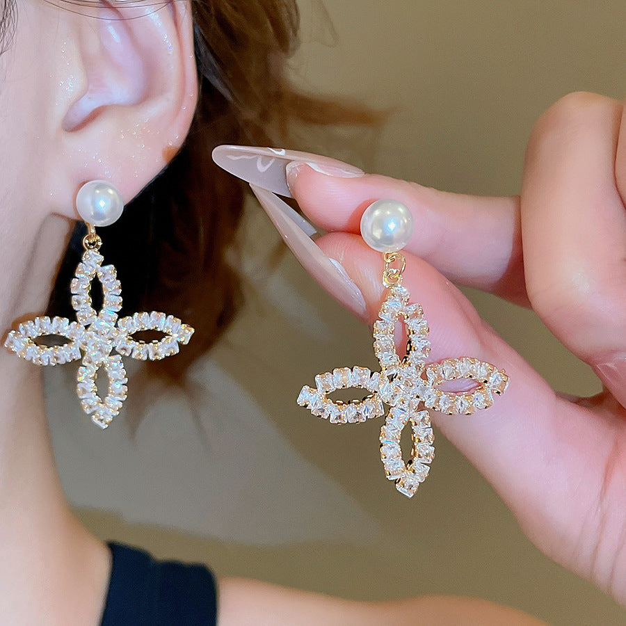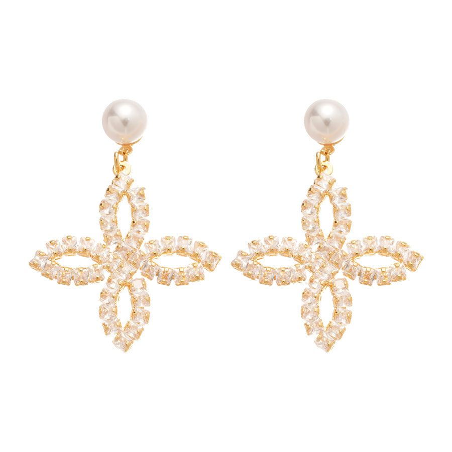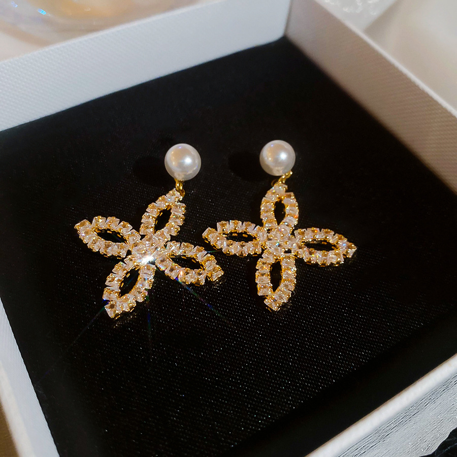 A2廠 韓國韓版鋯石珍珠花瓣電鍍18K真金銀針耳環 批發 折扣@洽客服 25.11.W1「WE4878」
