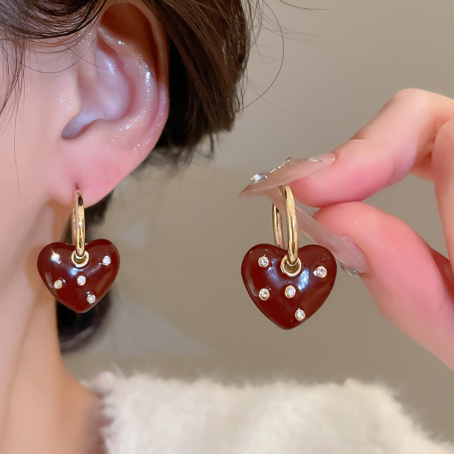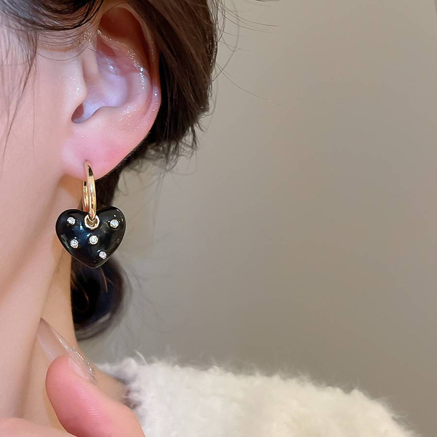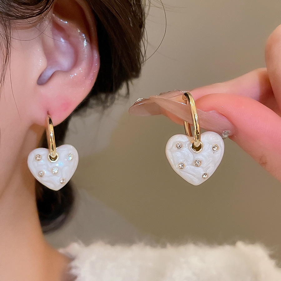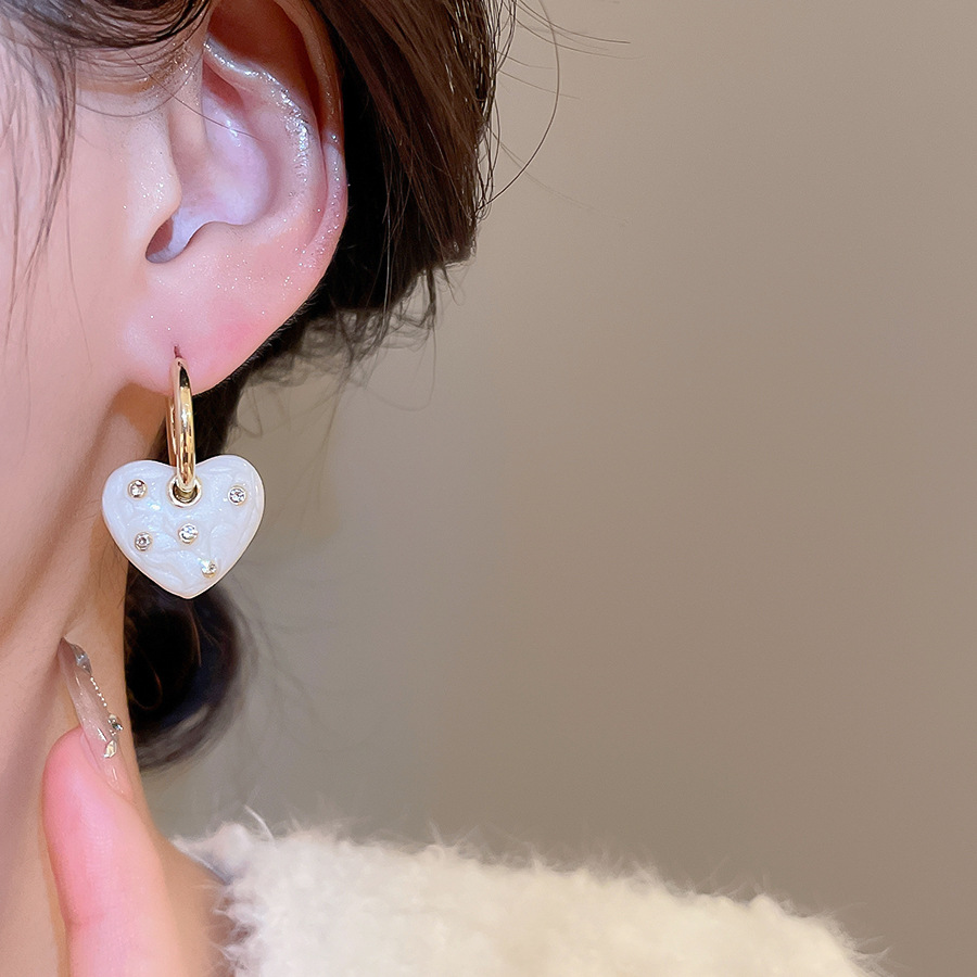 A2廠 韓國韓版鑲鑽滴油愛心吊墜銀針耳環 批發 折扣@洽客服 25.11.W1「WE4893」