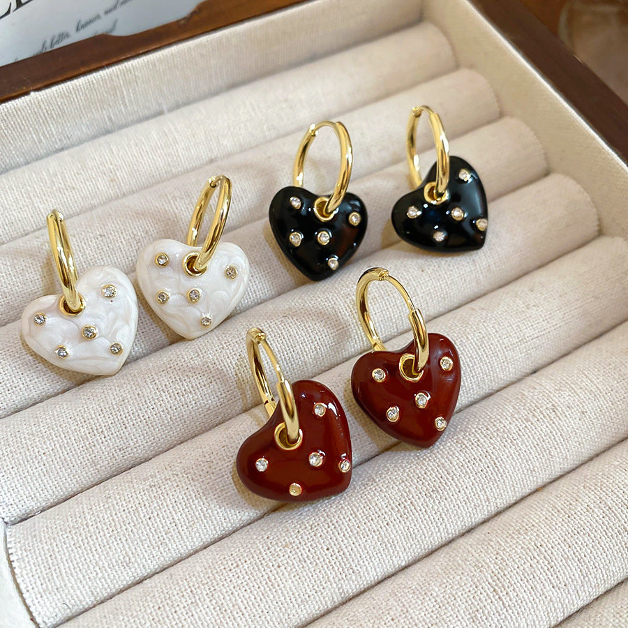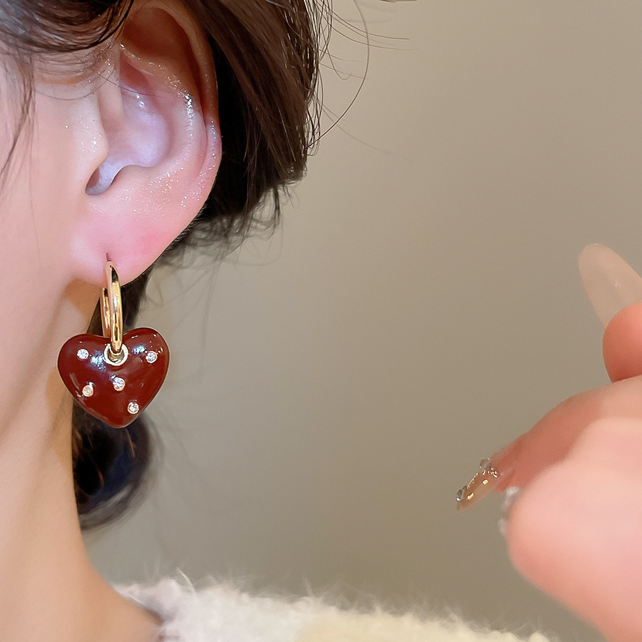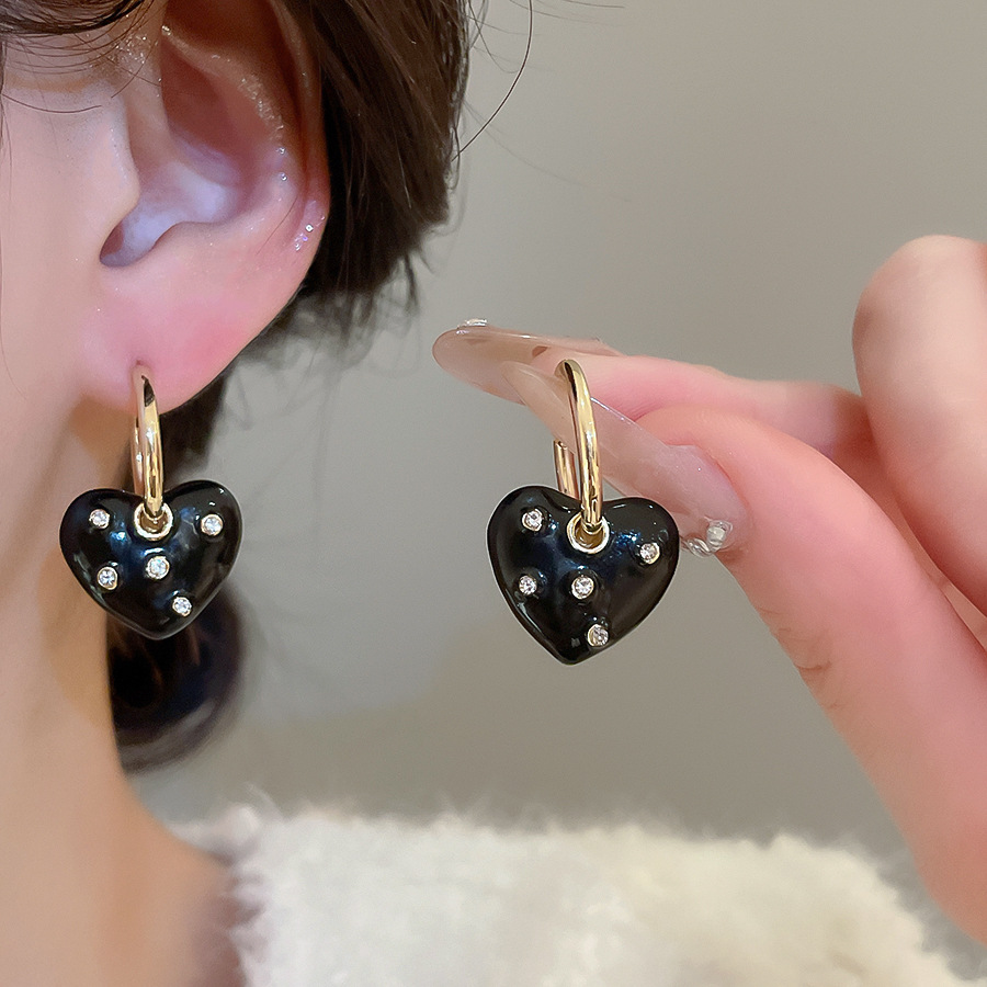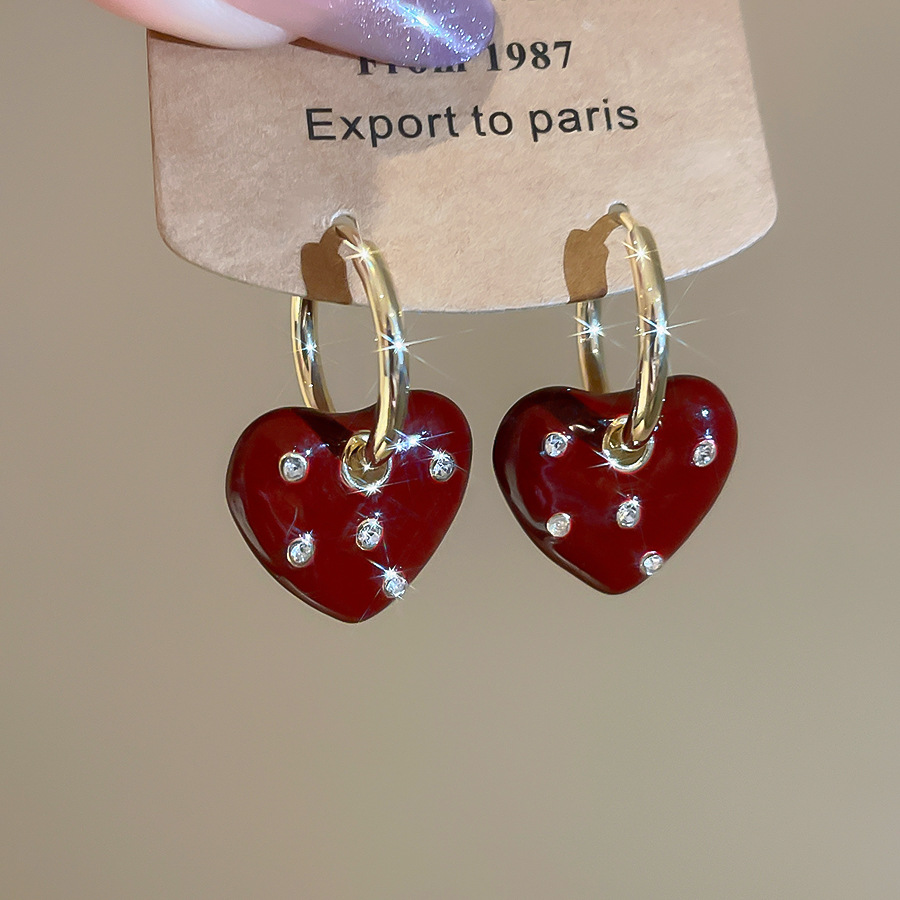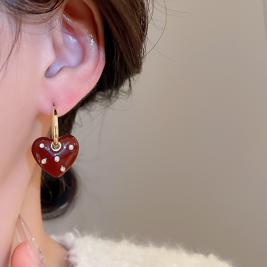 A2廠 韓國韓版鑲鑽滴油愛心吊墜銀針耳環 批發 折扣@洽客服 25.11.W1「WE4893」