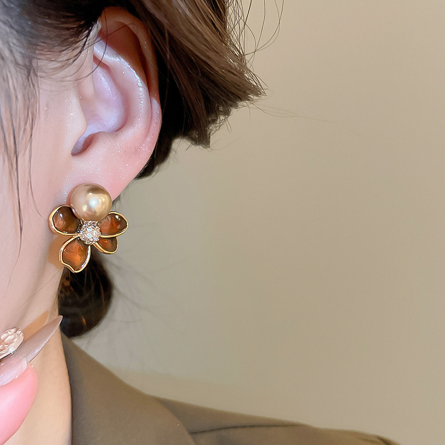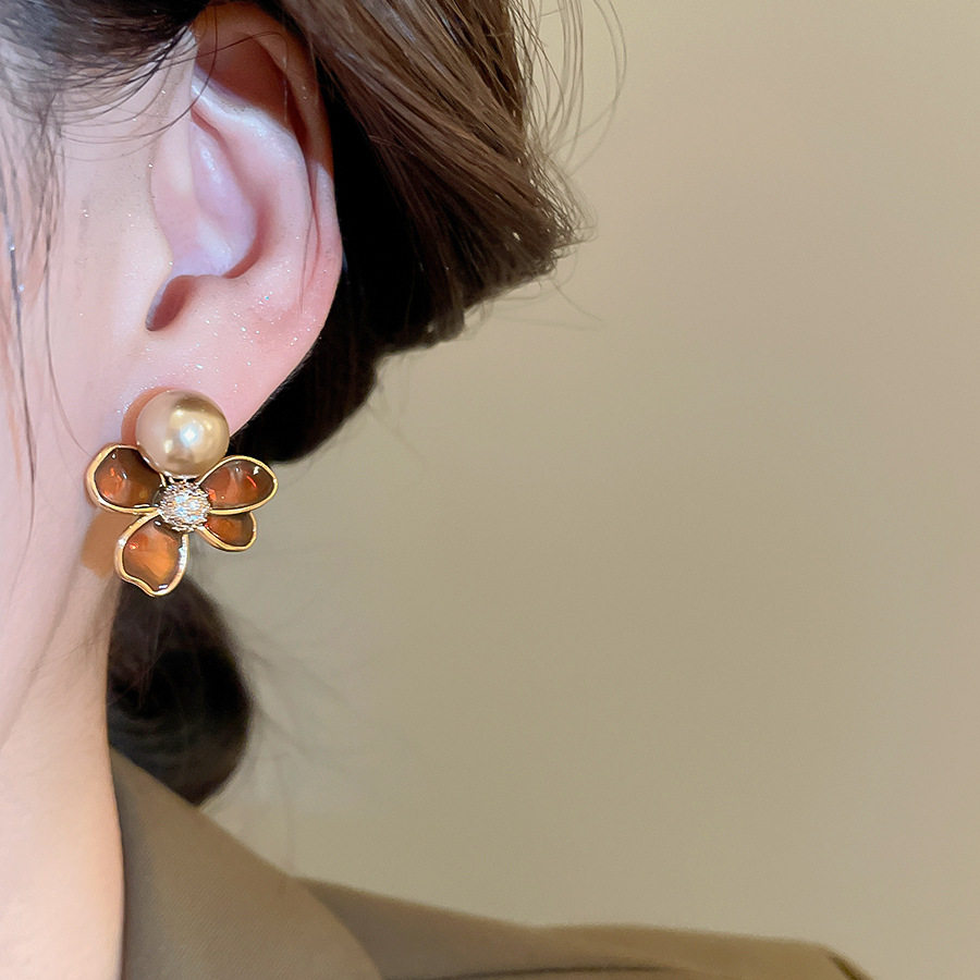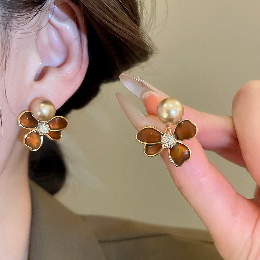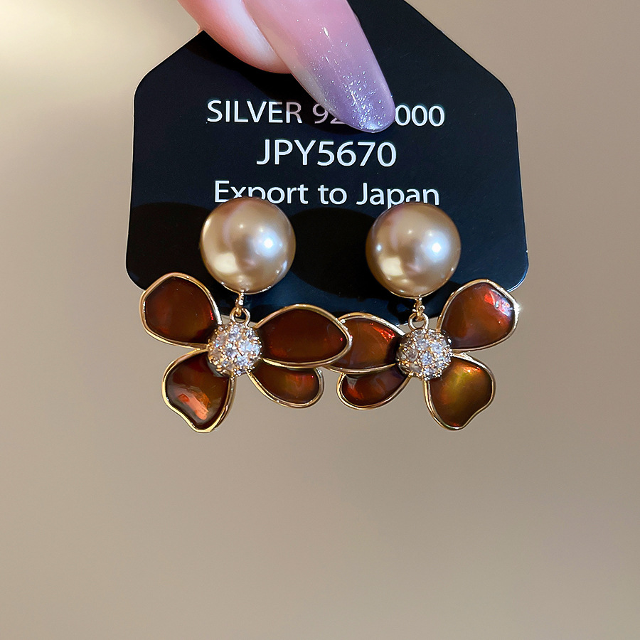 A2廠 日韓款滴油花朵珍珠電鍍18k金銀針耳環 批發 折扣@洽客服 25.11.W4「WE4955」