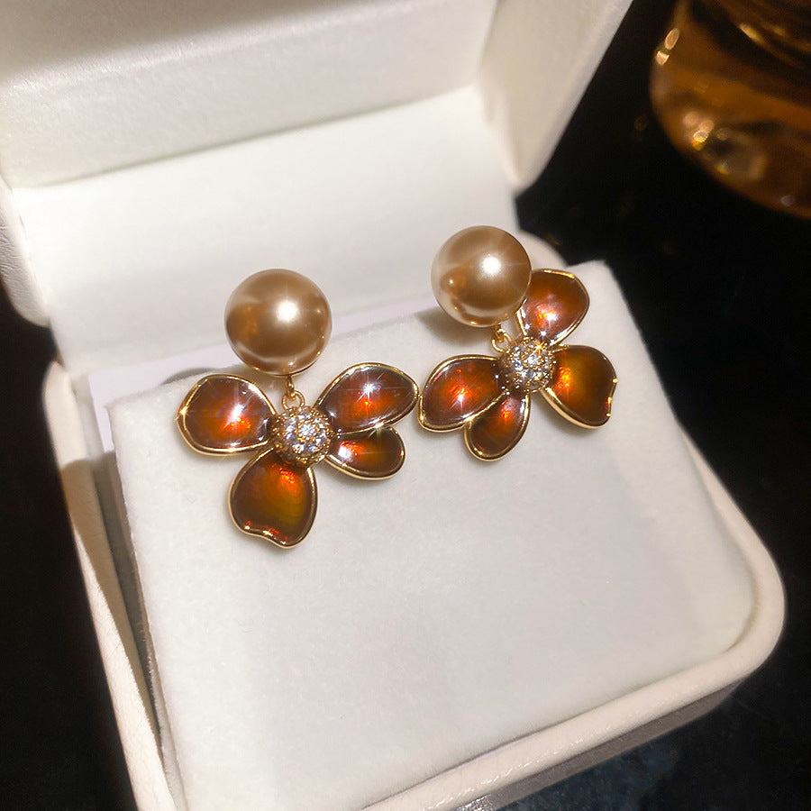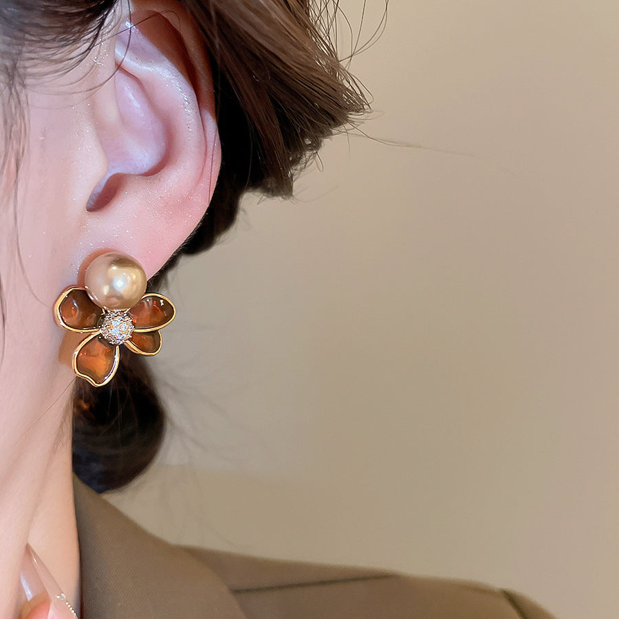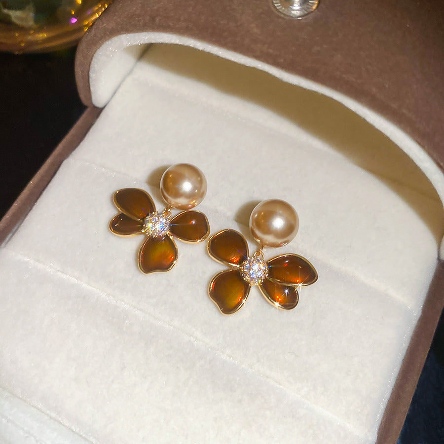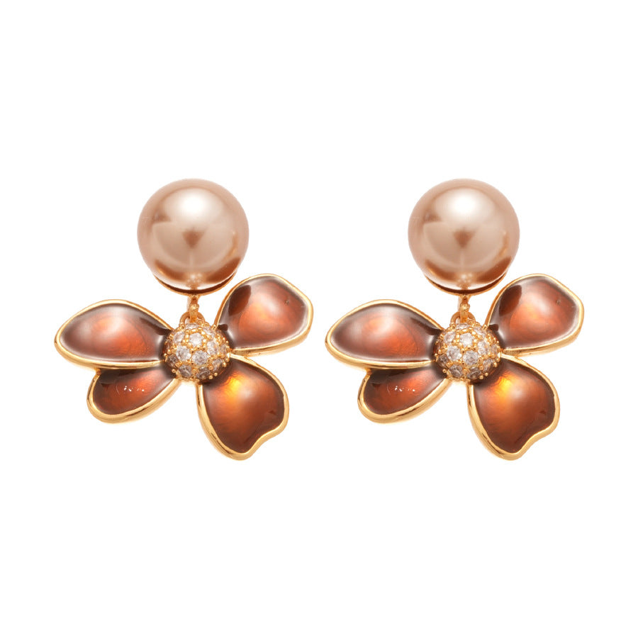 A2廠 日韓款滴油花朵珍珠電鍍18k金銀針耳環 批發 折扣@洽客服 25.11.W4「WE4955」