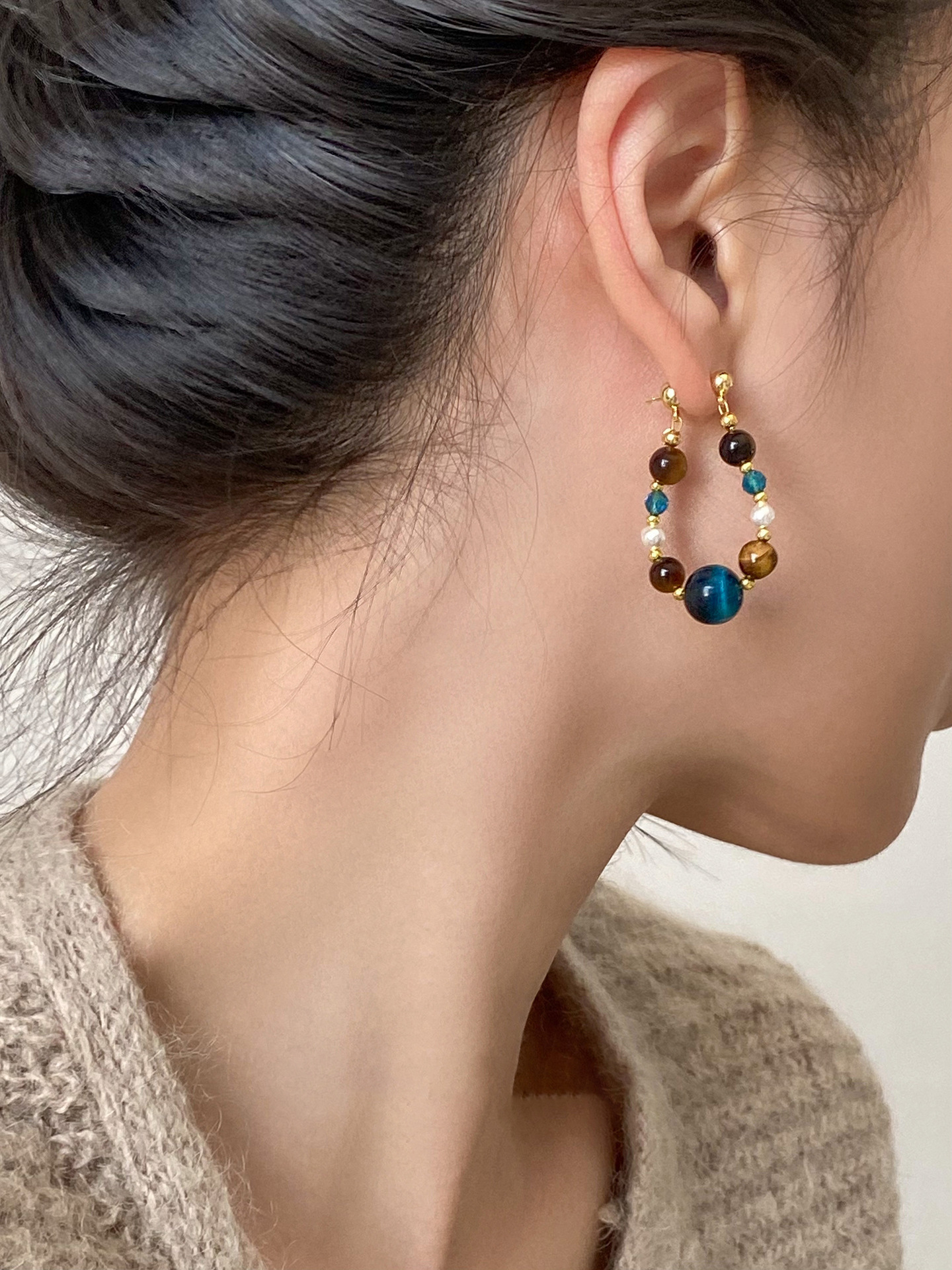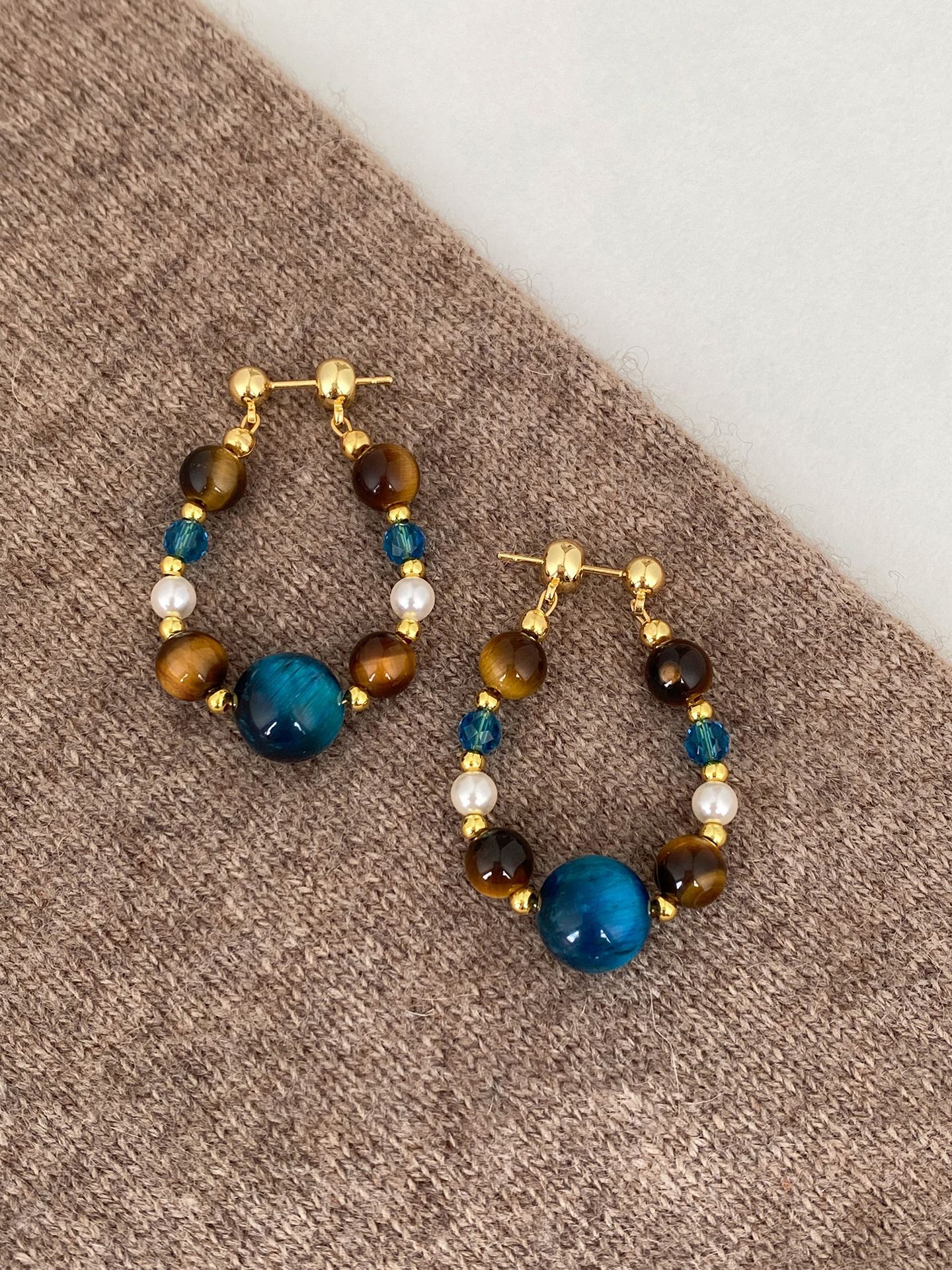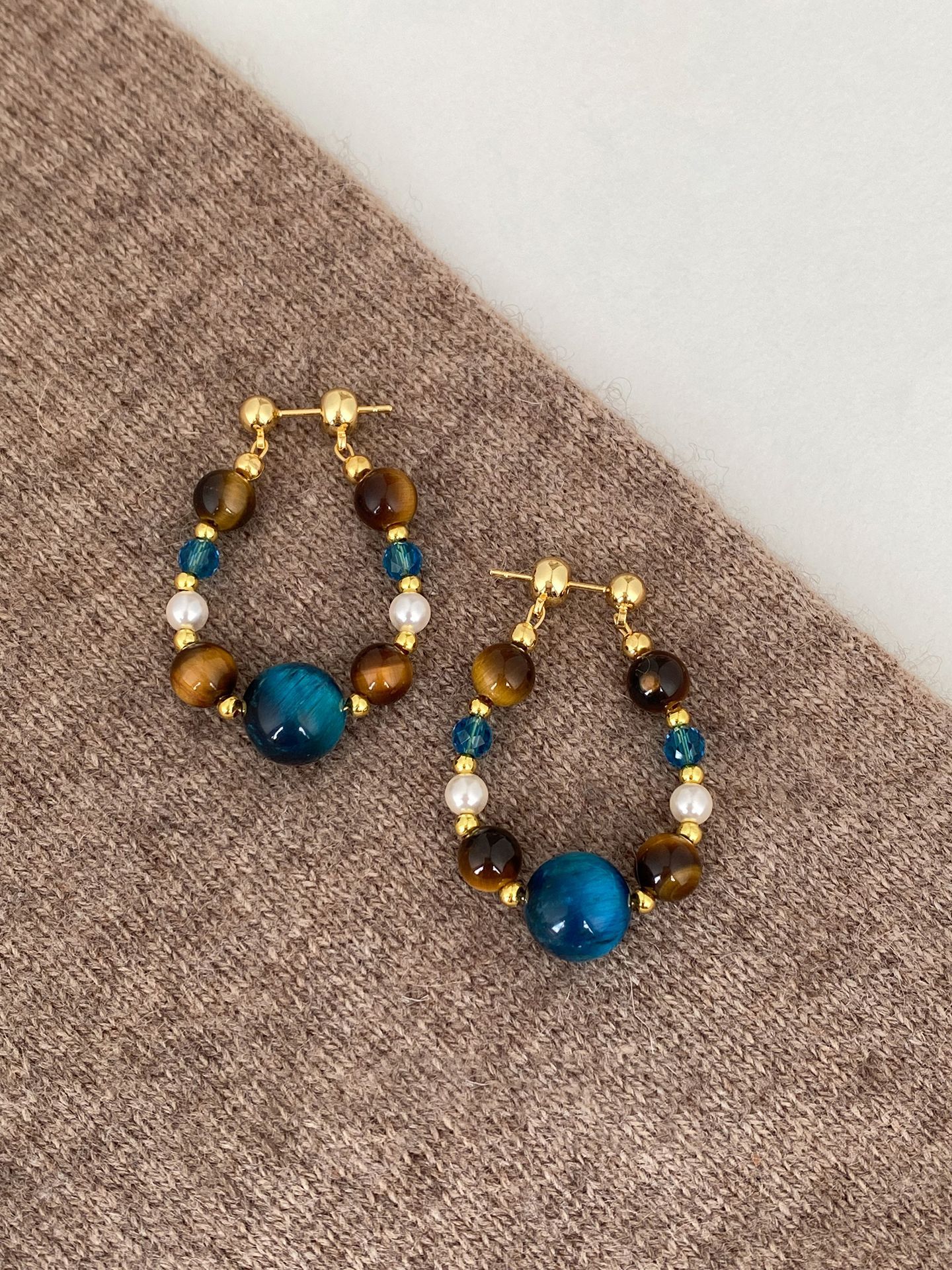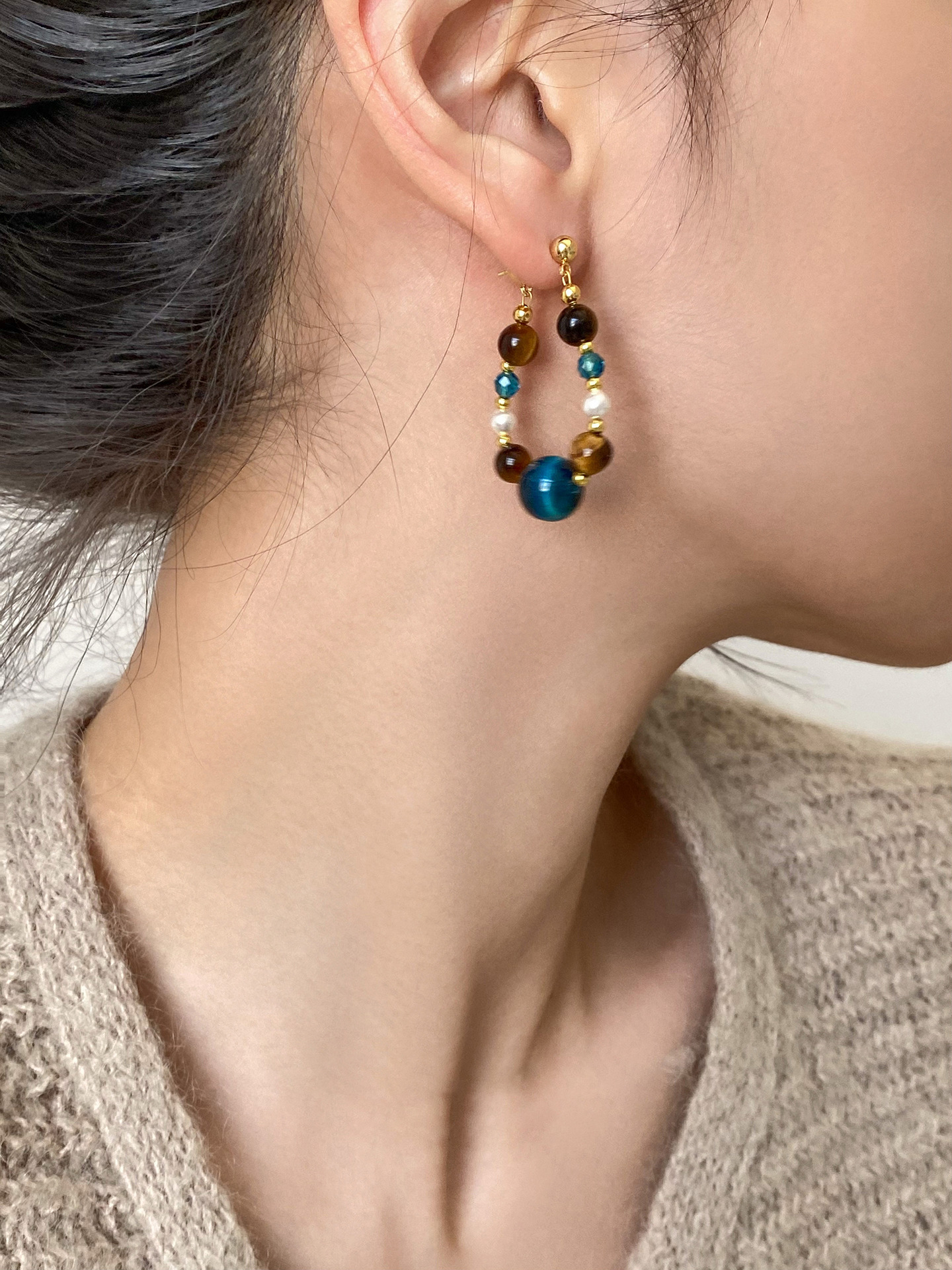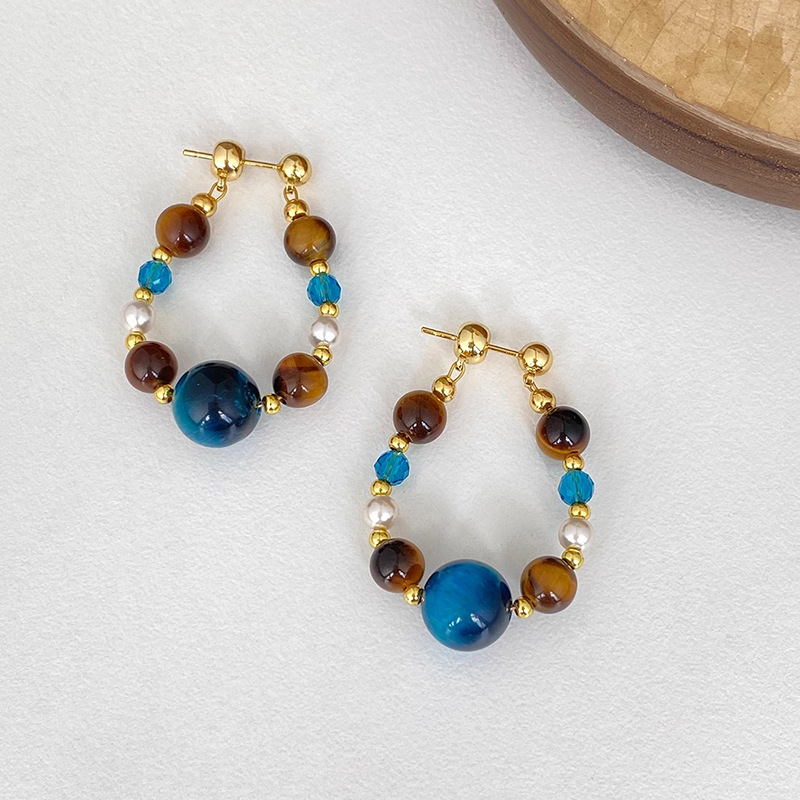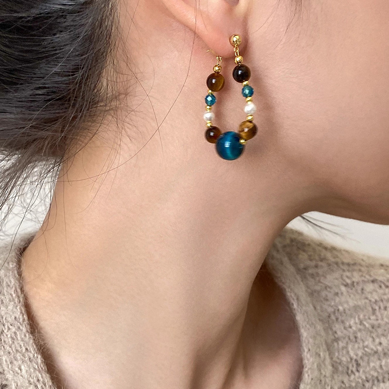 A2廠 日韓款珍珠虎眼石水晶銀針耳環 批發 折扣@洽客服 25.11.W4「WE5009」