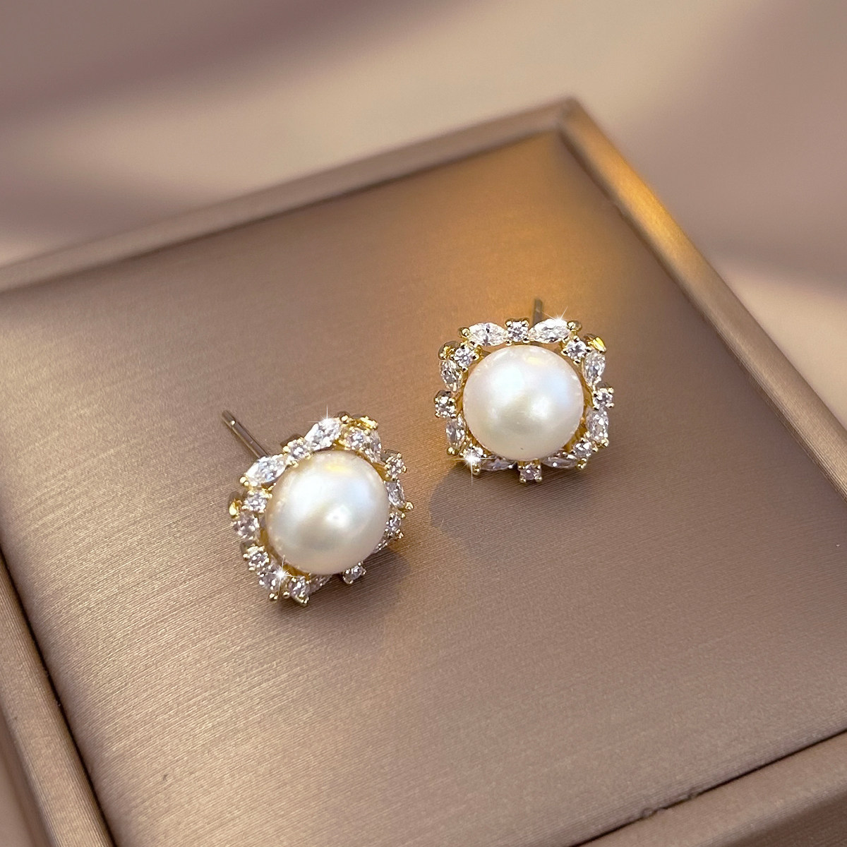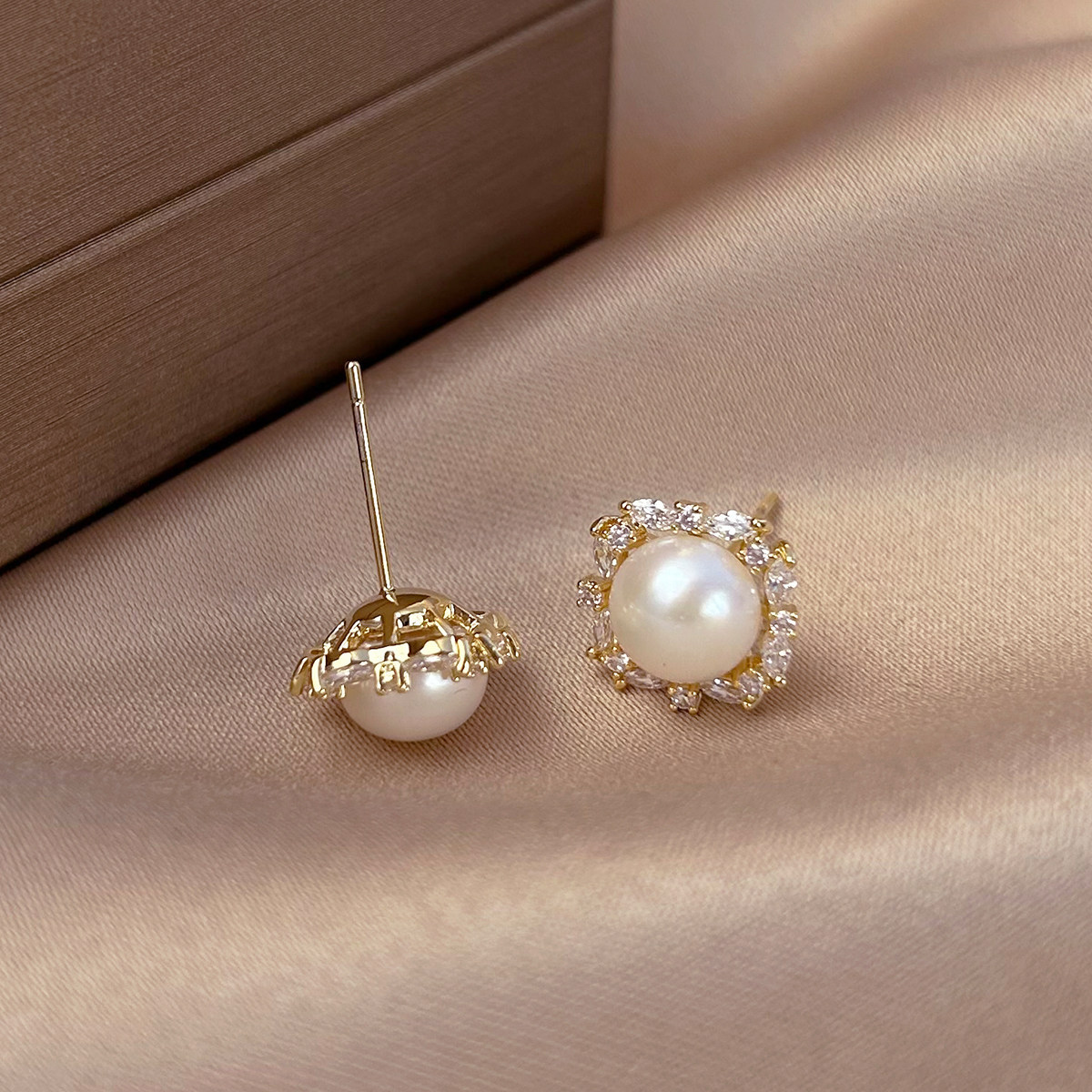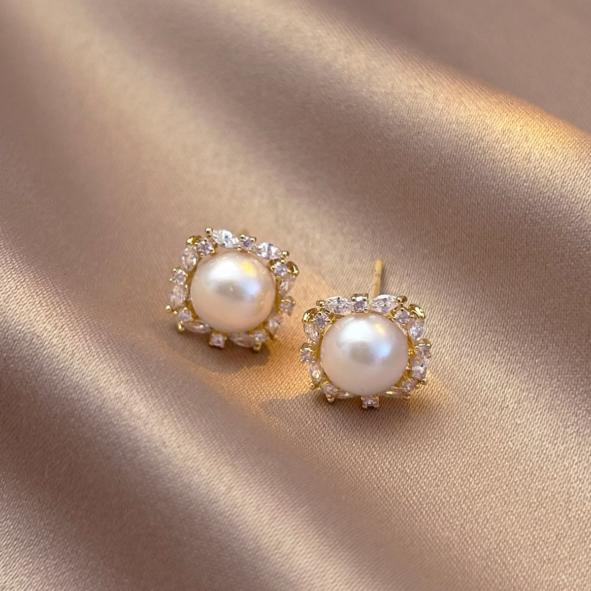 A2廠 鈦鋼|韓國韓版圓形鋯石珍珠電鍍14K真金銀針耳環 批發 折扣@洽客服 26.01.W4「WE5988-1」
