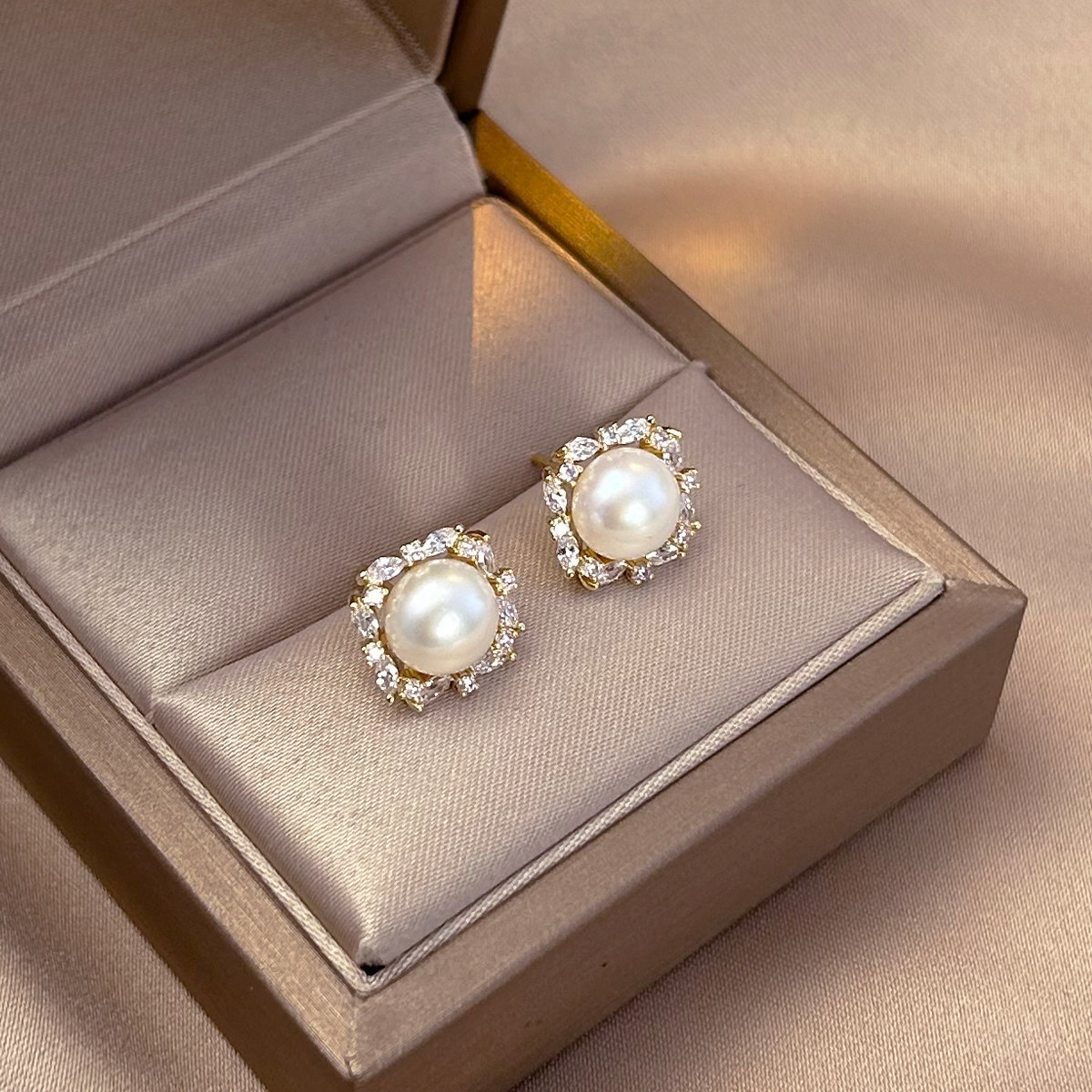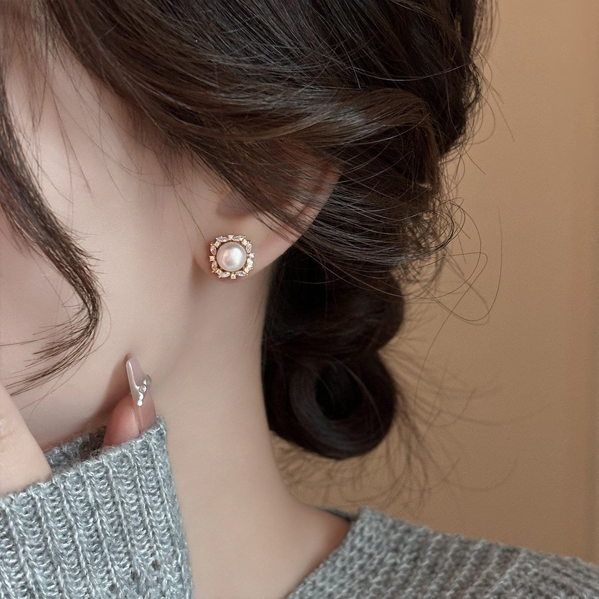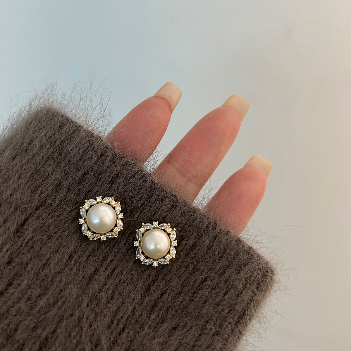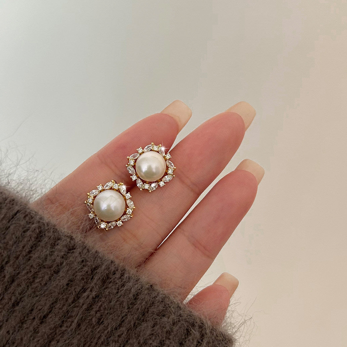 A2廠 鈦鋼|韓國韓版圓形鋯石珍珠電鍍14K真金銀針耳環 批發 折扣@洽客服 26.01.W4「WE5988-1」
