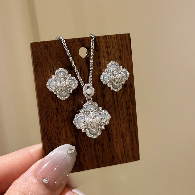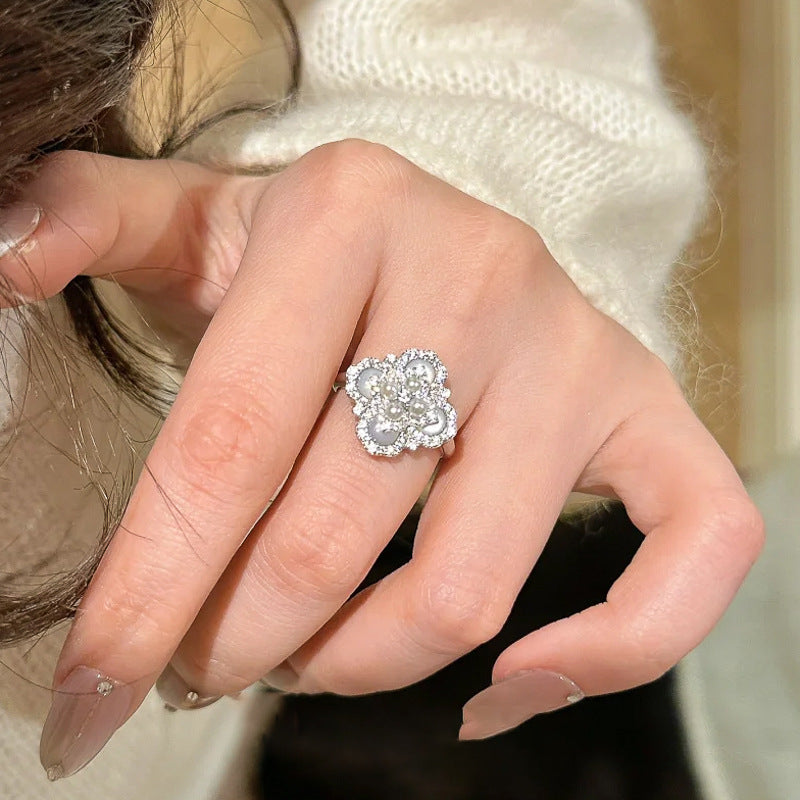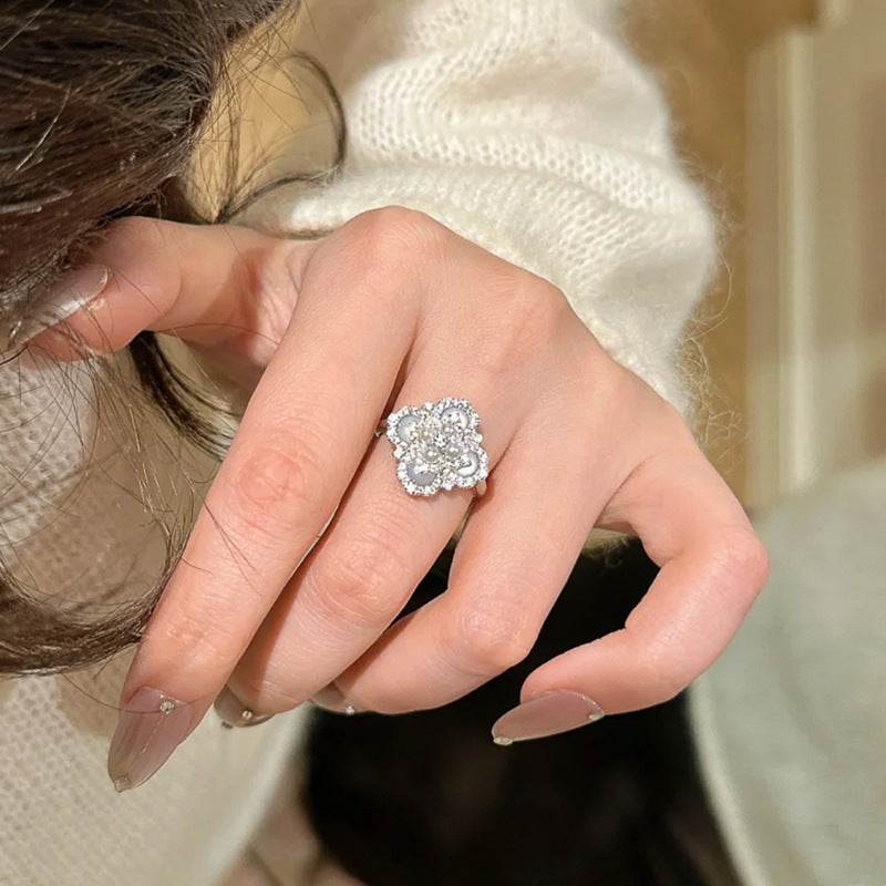 A2廠 韓國韓版珍珠雙層立體貓眼石花朵項鍊/戒指/耳環 批發 折扣@洽客服 25.06.W3「WN849」