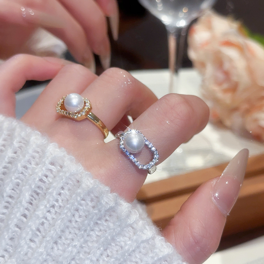 A2廠 韓國韓版鋯石珍珠幾何開口戒指 批發 折扣@洽客服 25.10.W5「WR460」