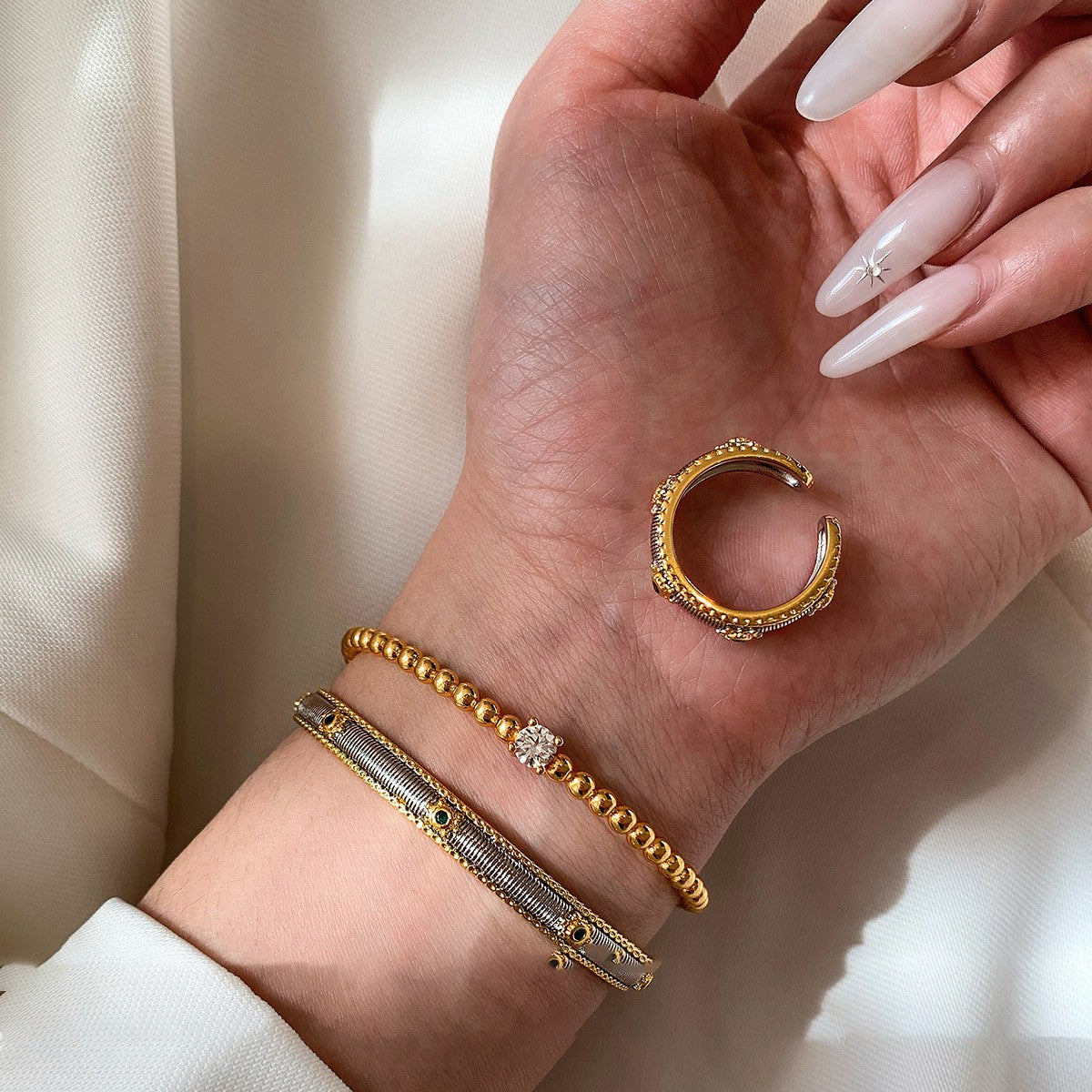 - 接觸到汗水,汗水中所含的酸鹼值較高,長時間配戴難免會接觸到汗水會對金屬造成腐蝕作用及加速氧化,盡可能避免在流汗的情況下配戴,如有接觸到汗水,建議暫時取下並盡速擦乾,保持乾燥。