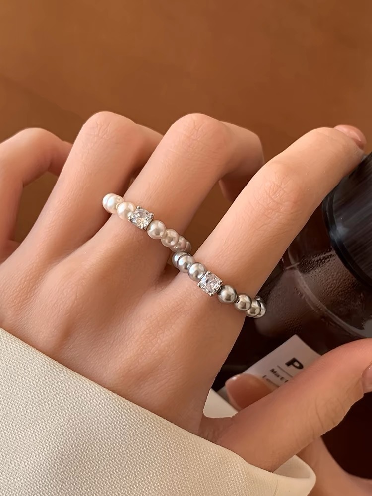 C2廠 韓國韓版小方糖閃鋯疊戴S925銀珍珠戒指「XDQ8375R」24.10.W4 批發折扣@洽客服