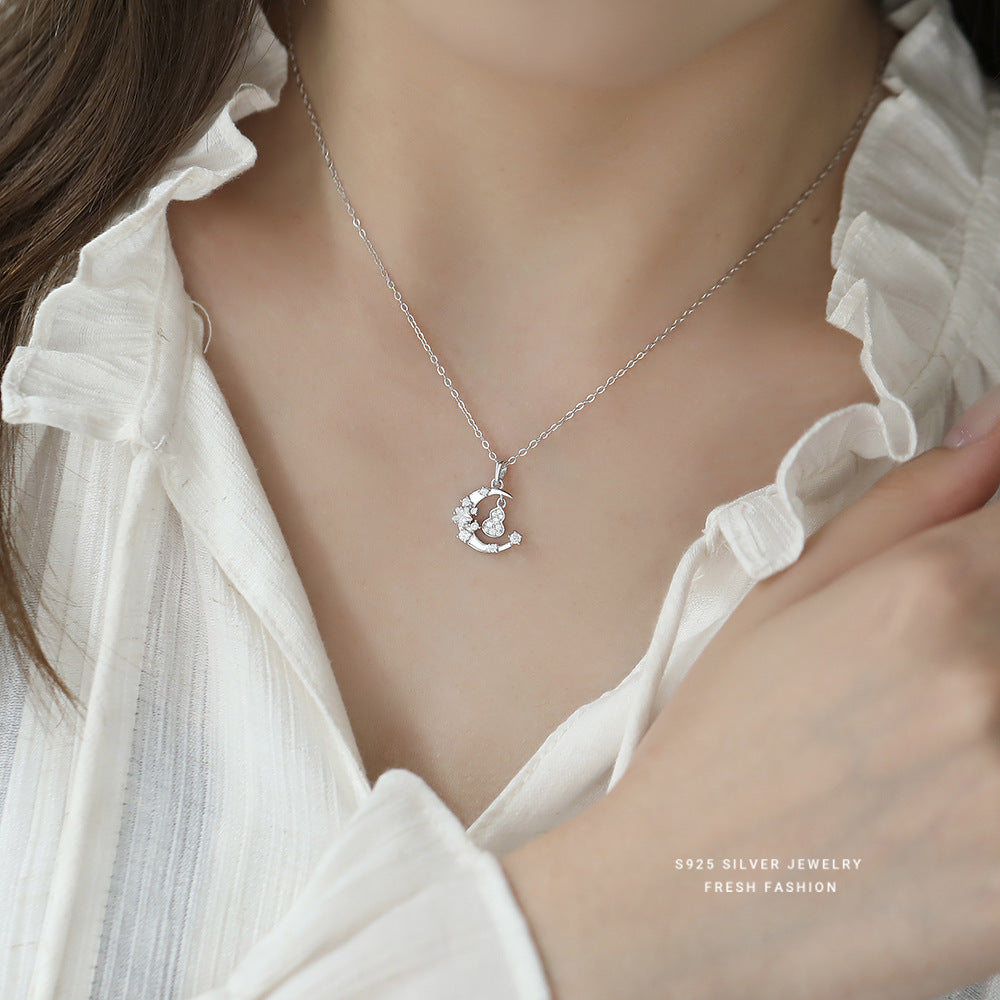 C廠 S925純銀|韓國韓版月亮葫蘆花朵項鍊 26.02.W1「YA0564」