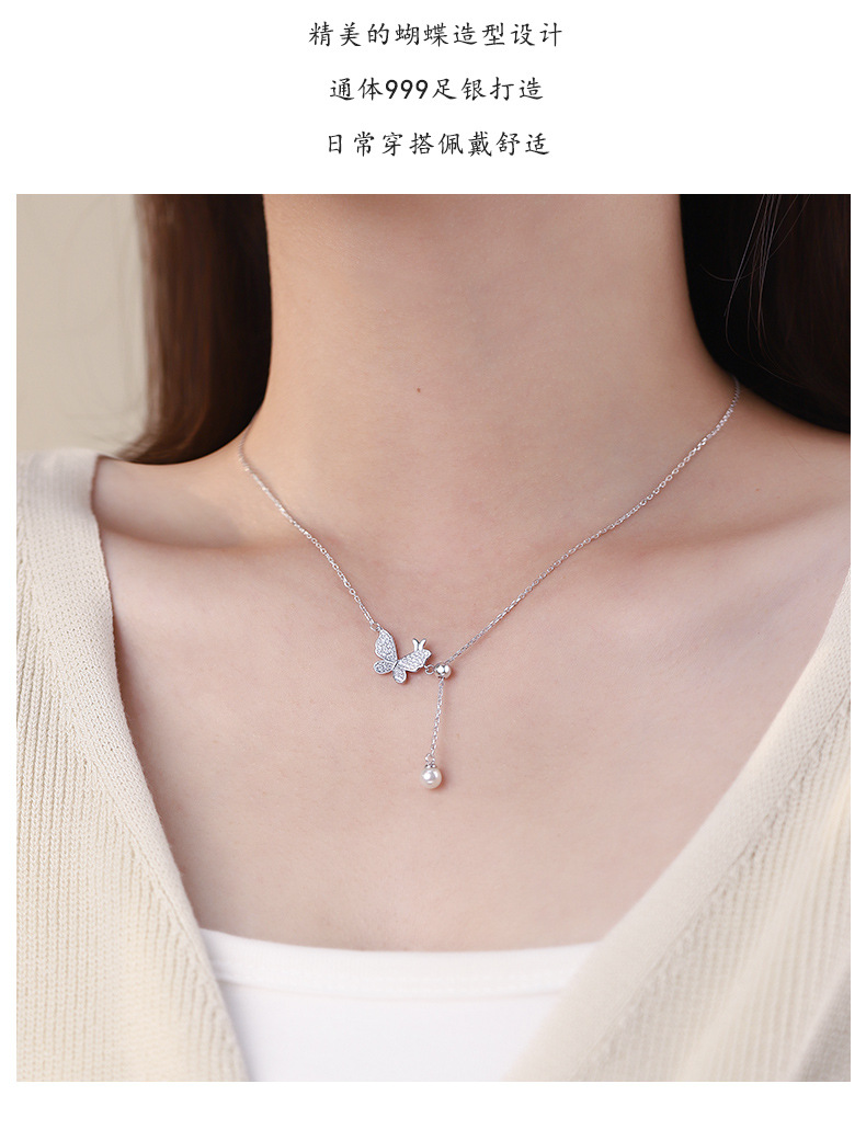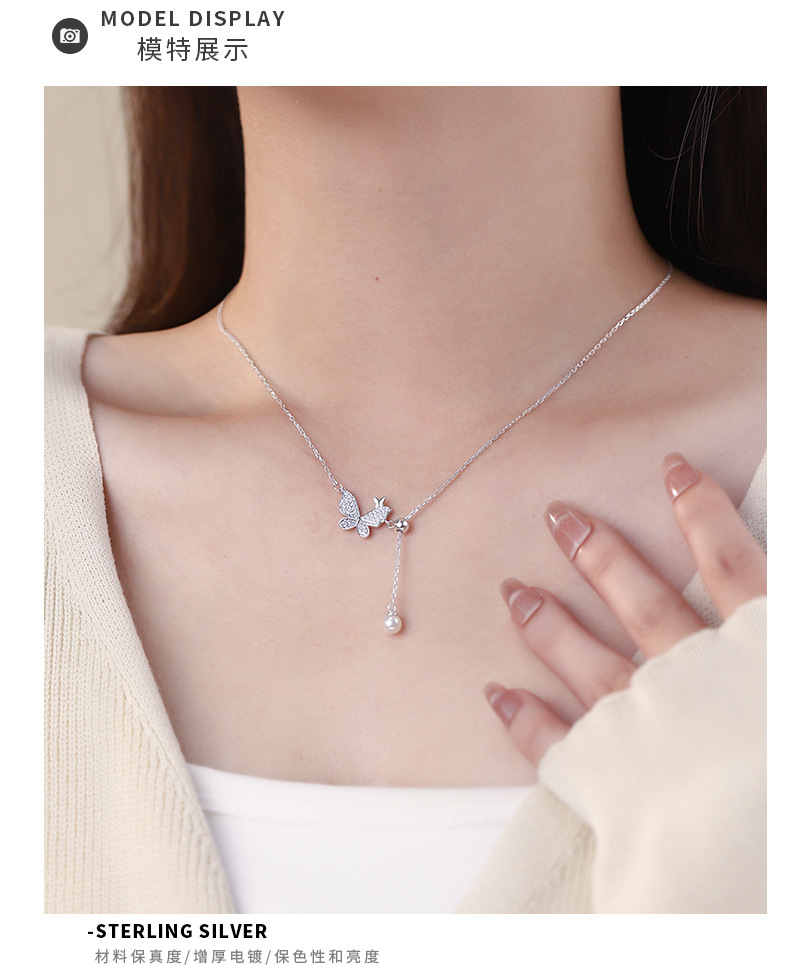 C廠 韓系甜美蝴蝶珍珠S999純銀項鍊「YC0057N_2」24.12.W2 批發折扣@洽客服