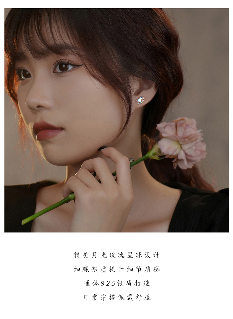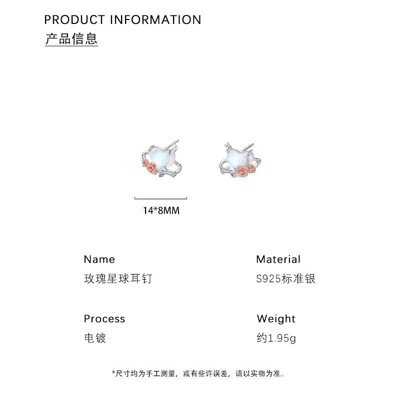C廠 韓國韓版【玫瑰星球】月光石S925純銀耳環 批發 折扣@洽客服 25.10.W3「YE0135」