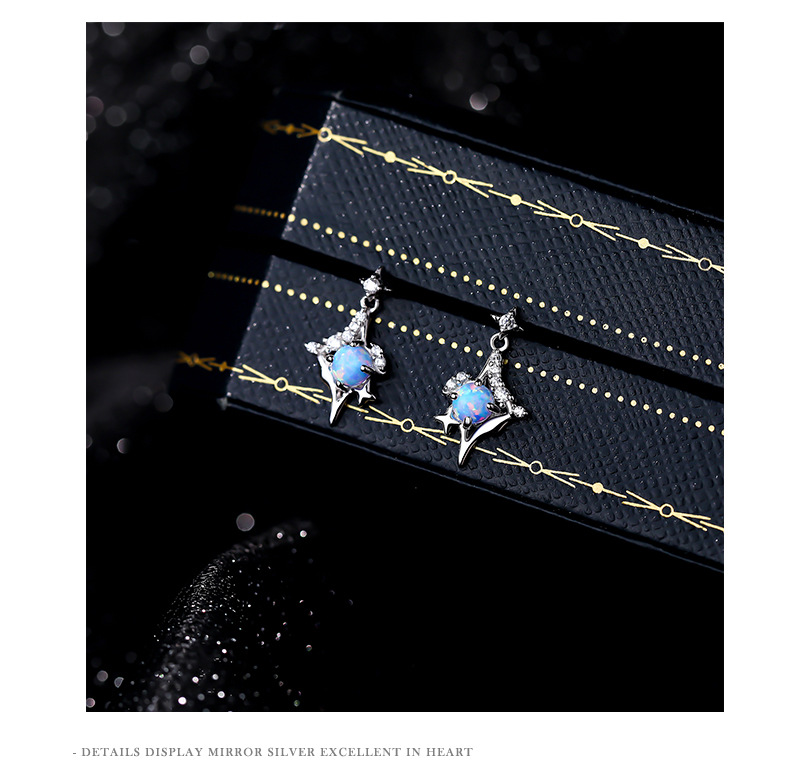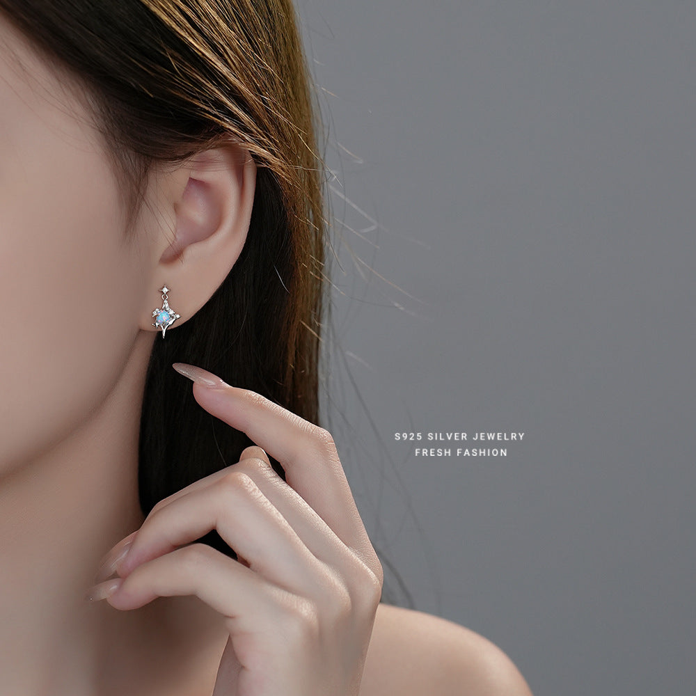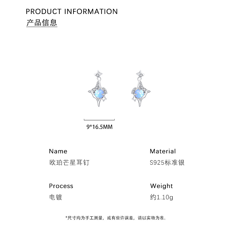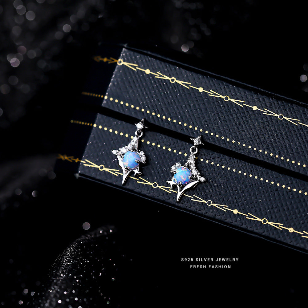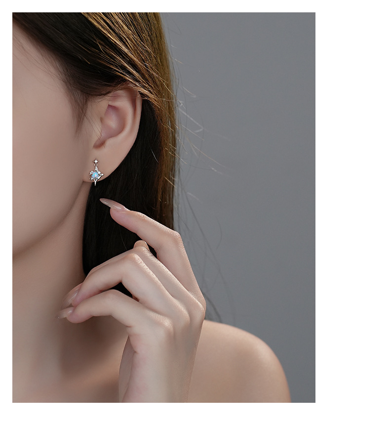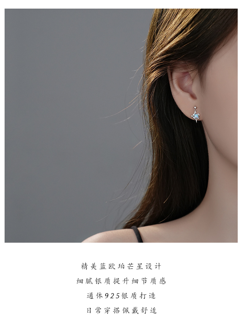 C廠 韓國韓版藍色歐珀石芒星925純銀耳環 批發 折扣@洽客服 25.10.W3「YE0150」