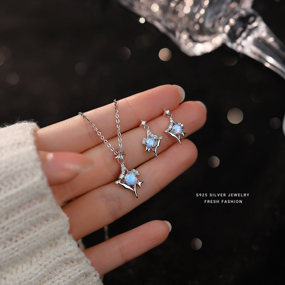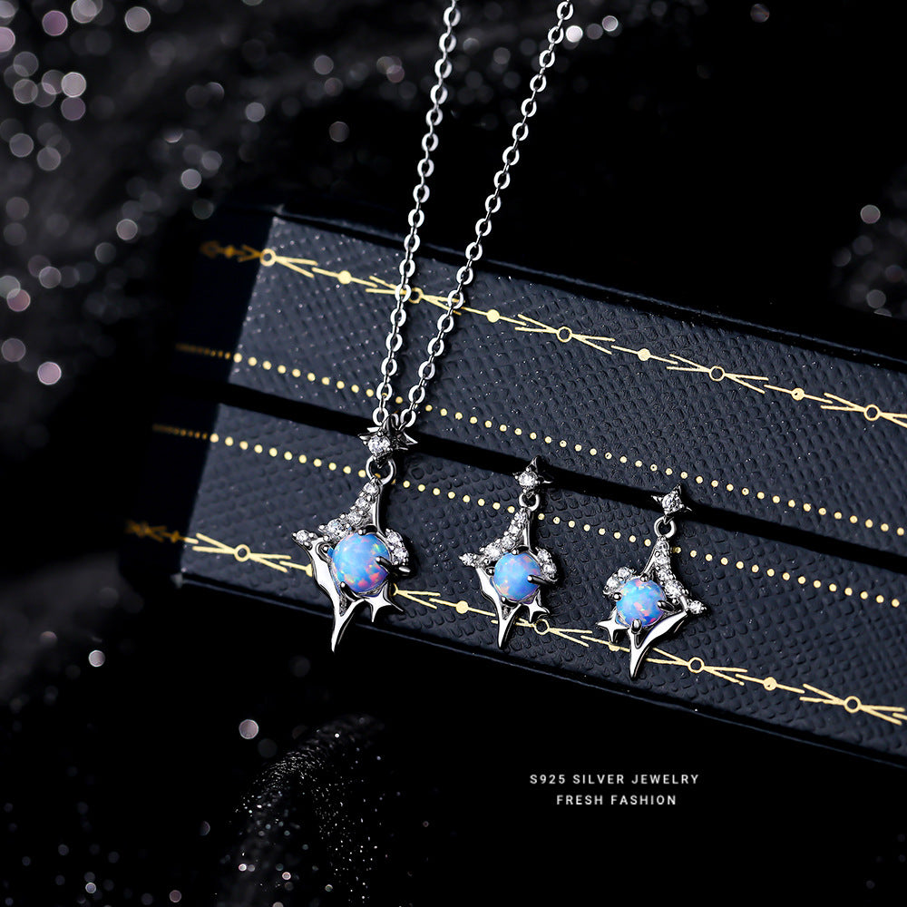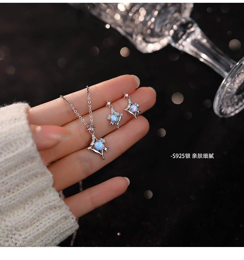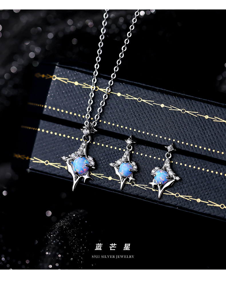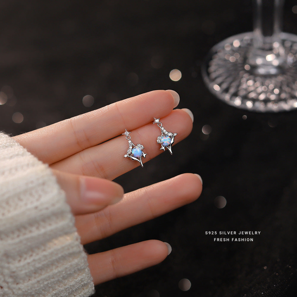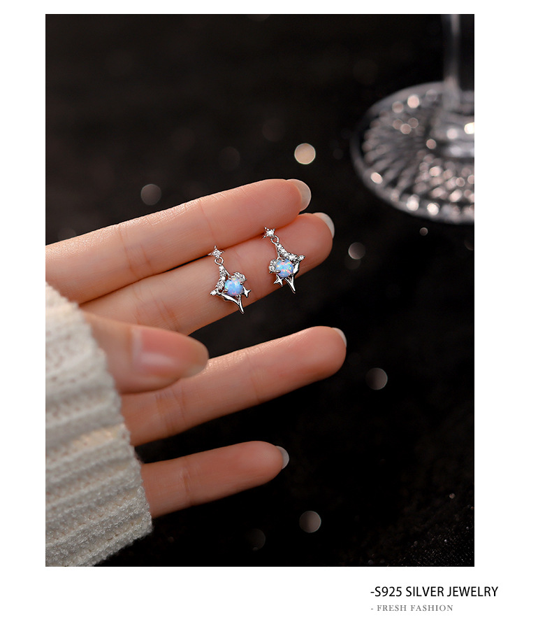 C廠 韓國韓版藍色歐珀石芒星925純銀耳環 批發 折扣@洽客服 25.10.W3「YE0150」