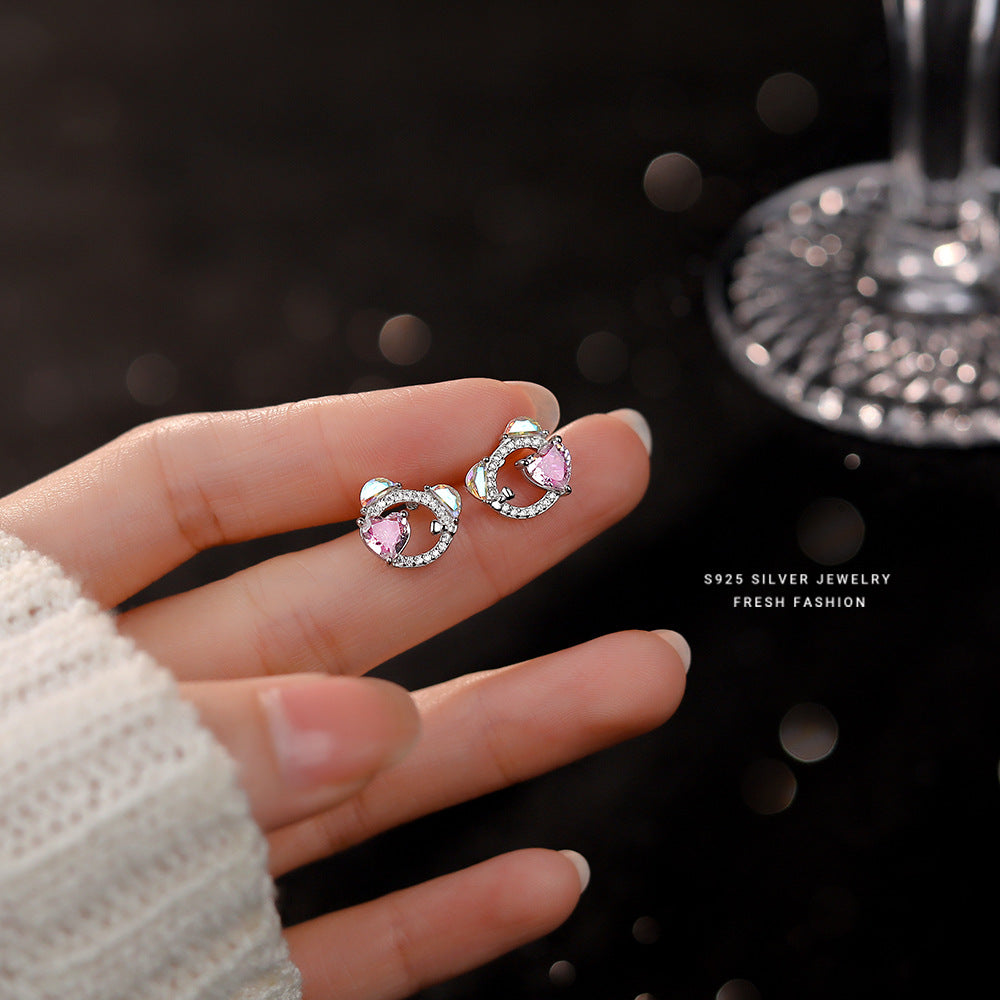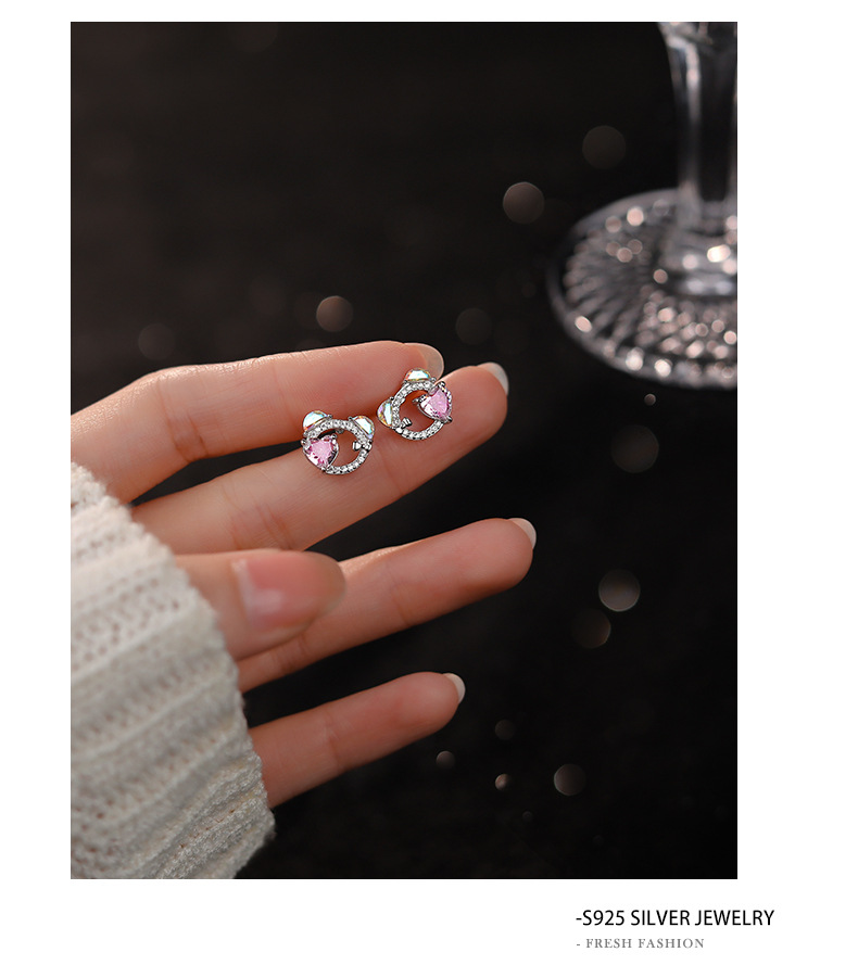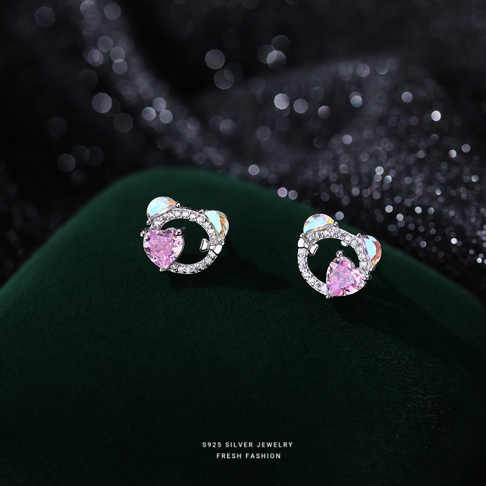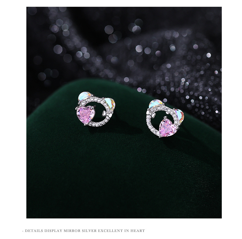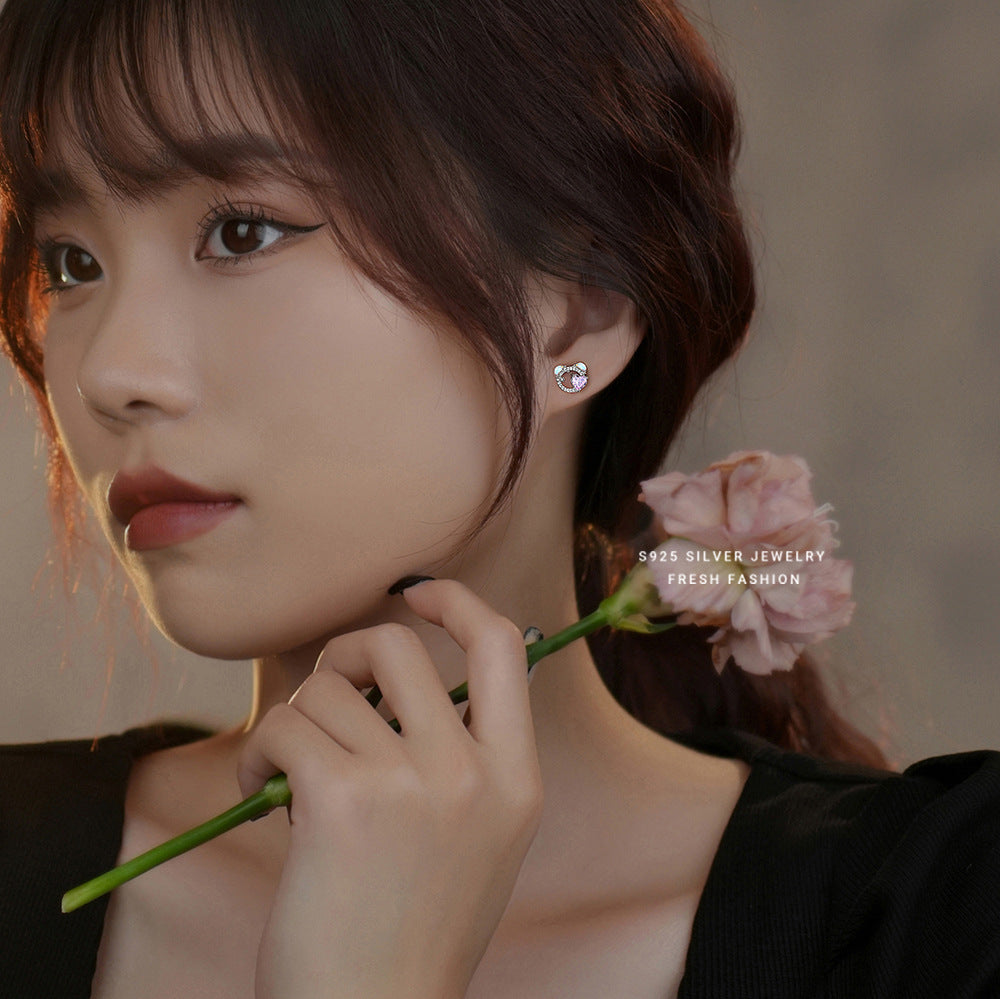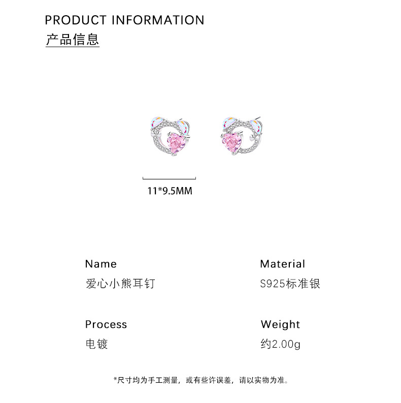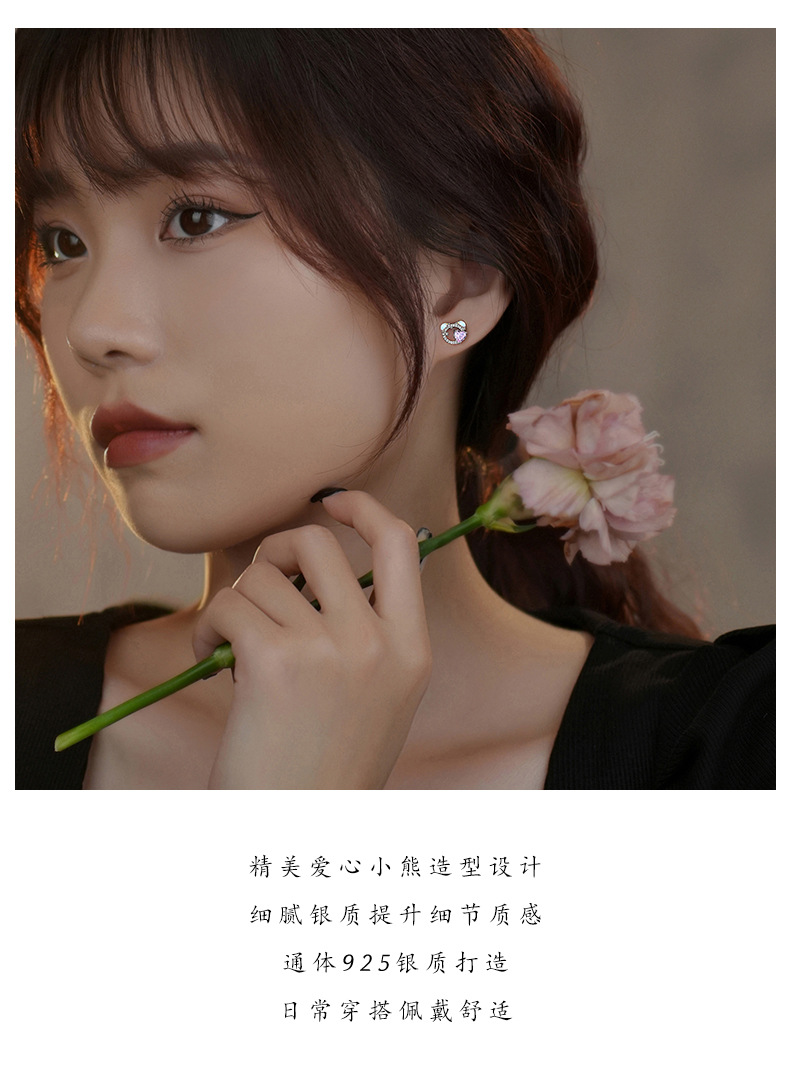 C廠 韓國韓版幻彩愛心小熊S925純銀耳環 批發 折扣@洽客服 25.10.W3「YE0156」