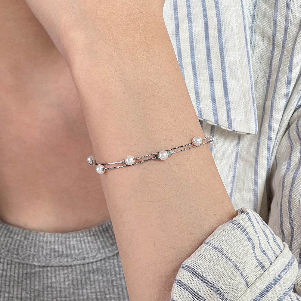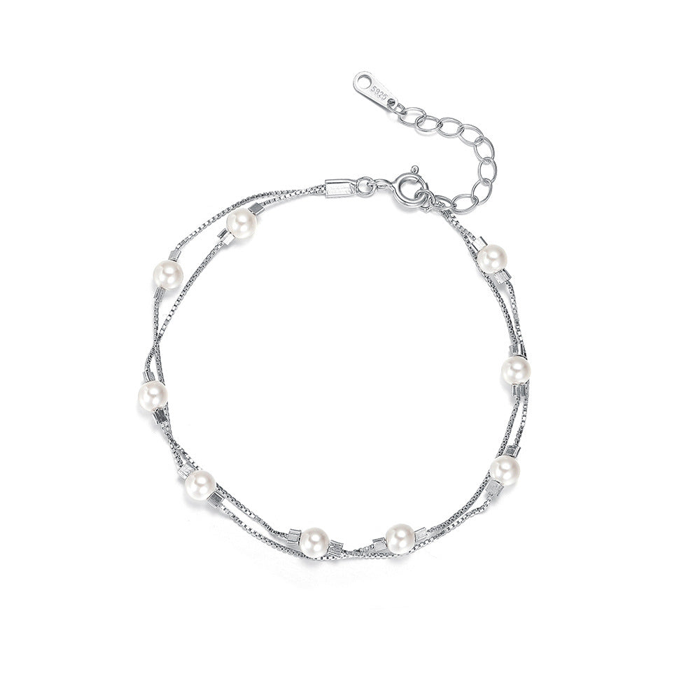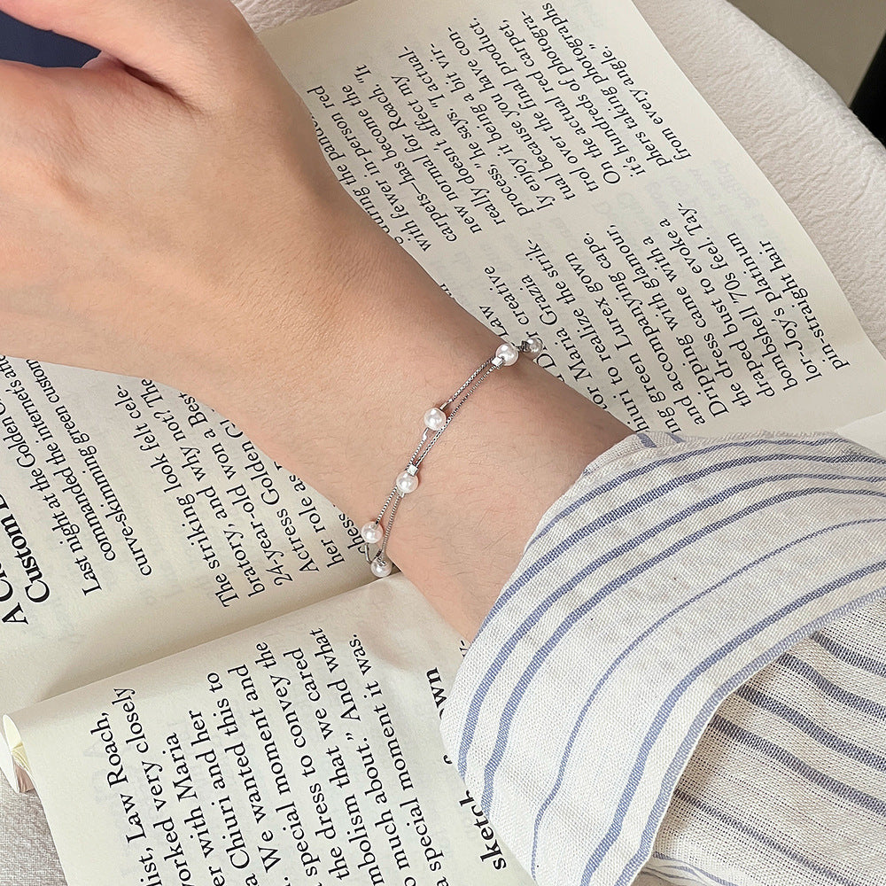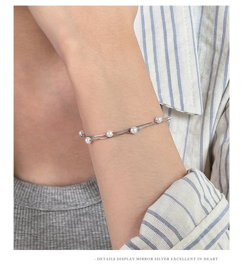 C廠 韓國韓版雙層疊戴珍珠S925純銀手鍊 批發 折扣@洽客服 26.01.W1「YL0125」