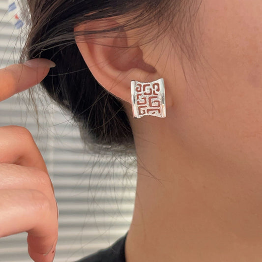 C3廠 韓版重工幾何鏤空S925純銀耳環 批發 折扣@洽客服 25/11.W4「hes420」