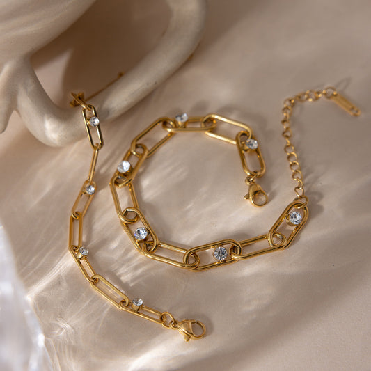 B廠 鈦鋼鍍18K金|歐美圓形白色鋯石手鍊 批發 折扣@洽客服 26.01.W4「JDB0310026,JDB0310027」