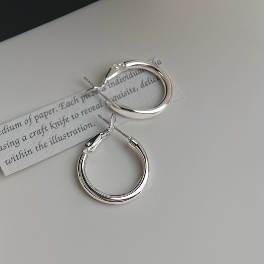 A廠 環保銅|韓系氣質光面幾何銀色耳圈「451」