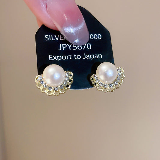 A2廠 鈦鋼|韓系鑲鑽蕾絲珍珠銀針耳環 批發 折扣@洽客服 26.02.W1「HE30382」