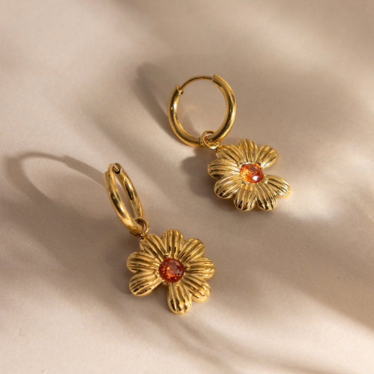 B廠 鈦鋼鍍18K金|歐美橘色鋯石小雛菊耳環 批發 折扣@洽客服 26.01.W4「JDE0211101」