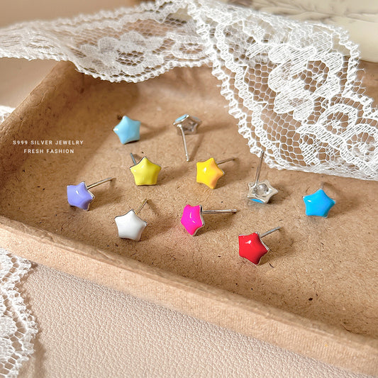 C廠 S999足銀|馬卡龍迷你星星耳環 批發 折扣@洽客服 25.01.W4「E6065」