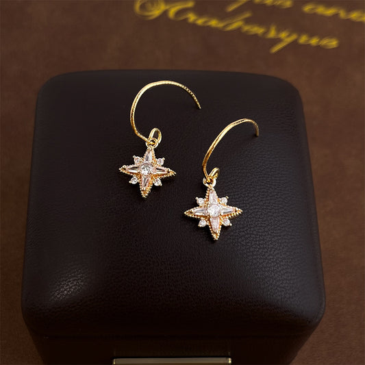 A廠 環保銅|韓系鋯石八芒星銀針耳環 批發 折扣@洽客服 26.01.W4「7066」
