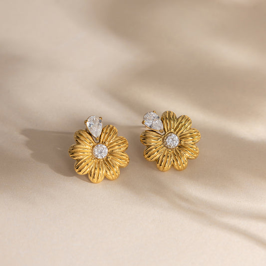 B廠 鈦鋼鍍18K金|歐美白色鋯石小雛菊花朵耳環 批發 折扣@洽客服 26.01.W4「JDE0211102」