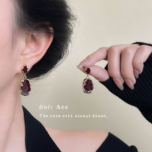 A廠 環保銅|韓系摩登酒紅銀針耳環 批發 折扣@洽客服 26.01.W4「C-818」